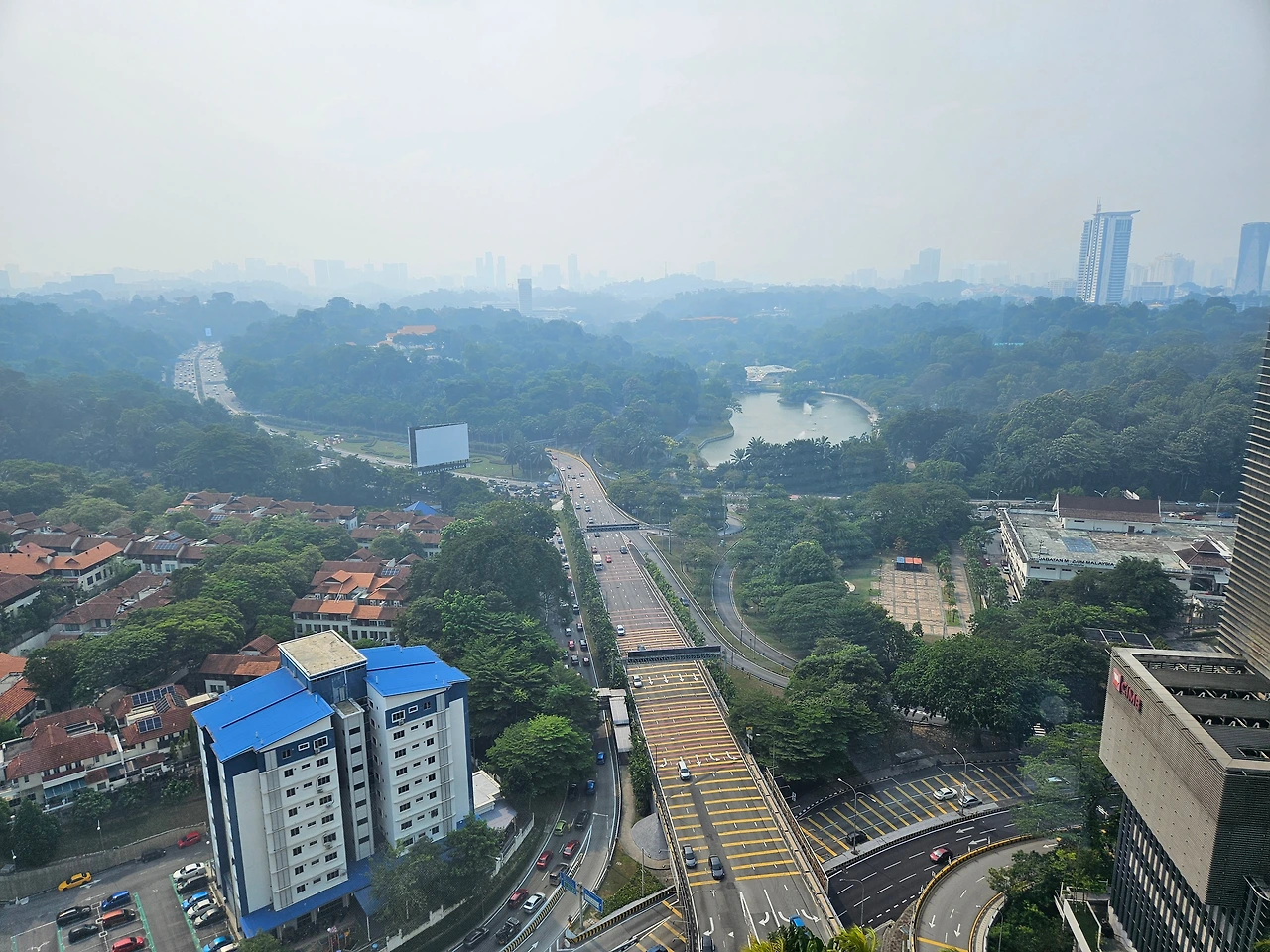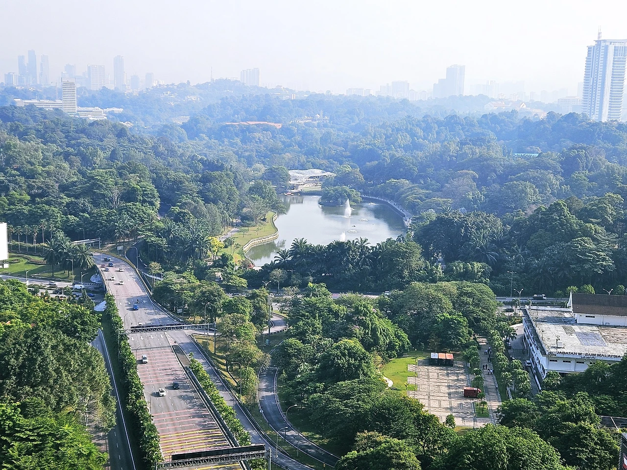 어제 늦게 잠이 들어서일까? 아침 8시가 훌쩍 넘은 시각에 잠에서 깨어났다. 졸린 눈을 비비며 창문을 열어보니 넓게 펼쳐진 푸른 공원과 함께 저 멀리 호수가 눈에 들어왔다. 공원 주위로 쿠알라룸푸르 북쪽으로 향하는 간선도로가 길게 이어졌다. 열대 우림 지역에 만들어진 도시답게 현대적인 도시 사이로 푸른 자연이 공존하고 있는 모습이었다. 이제야 말레이시아에 도착했다는 것이 실감되었다.