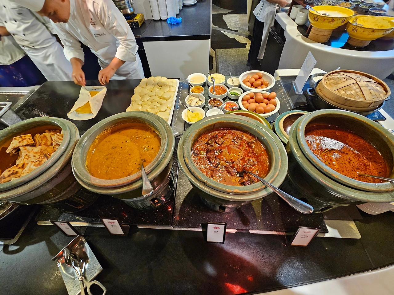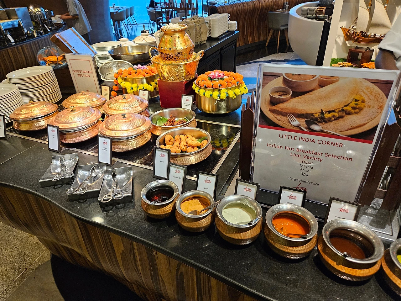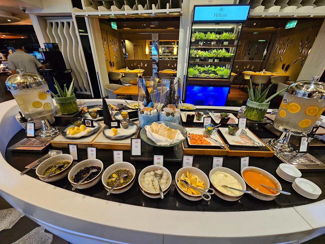 금강산도 식후경이라고 했던가? 출출한 배를 채우기 위해서 조식당으로 향했다. 힐튼 골드 멤버였기에 매일 아침 조식은 무료로 먹을 수 있었다. 주말 아침이라서 조식당은 앉을자리가 없을 정도로 분주했다. 잠시 기다리니 직원이 다가와서 창문 근처에 자리를 마련해 주었다. 식당을 한 번 둘러보니 메뉴는 다양했다. 동남아 음식부터 중국과 인도, 일본 등 다양한 아시아 음식을 만날 수 있었으며, 빵과 디저트, 과일도 준비되어 있었다. 다만 이슬람 국가라서 그런지 돼지고기로 된 요리는 보이지 않았다. 그 대신 소고기로 만든 베이컨이나 치킨을 활용한 소시지 등이 돼지고기를 대체하고 있었다. 음식 맛도 기대 이상이었다. 시원한 커피와 함께 빵과 계란, 신선한 샐러드와 요구르트, 얼큰한 면 요리를 먹고 나니 배가 불러왔다.