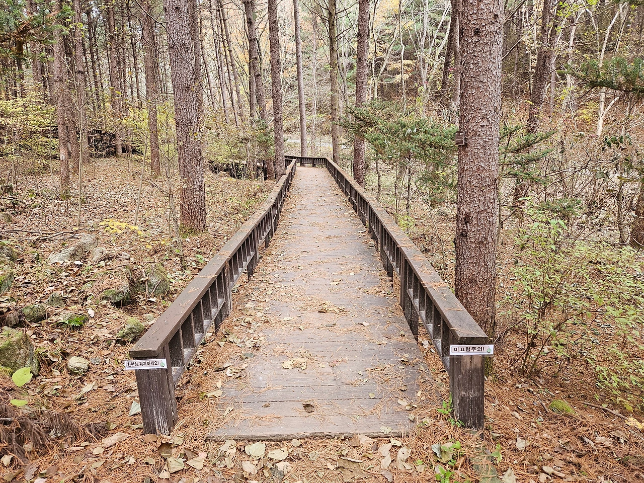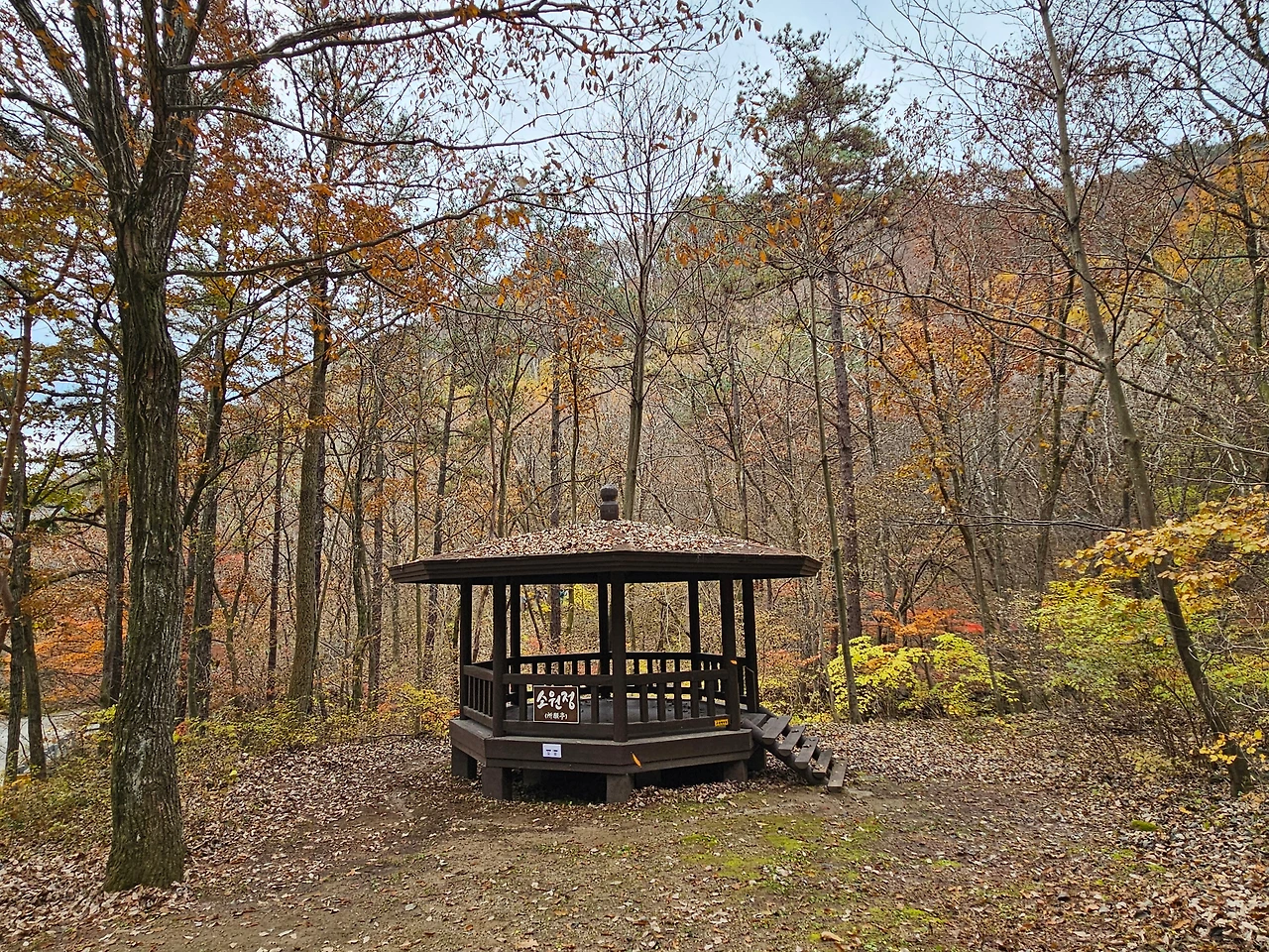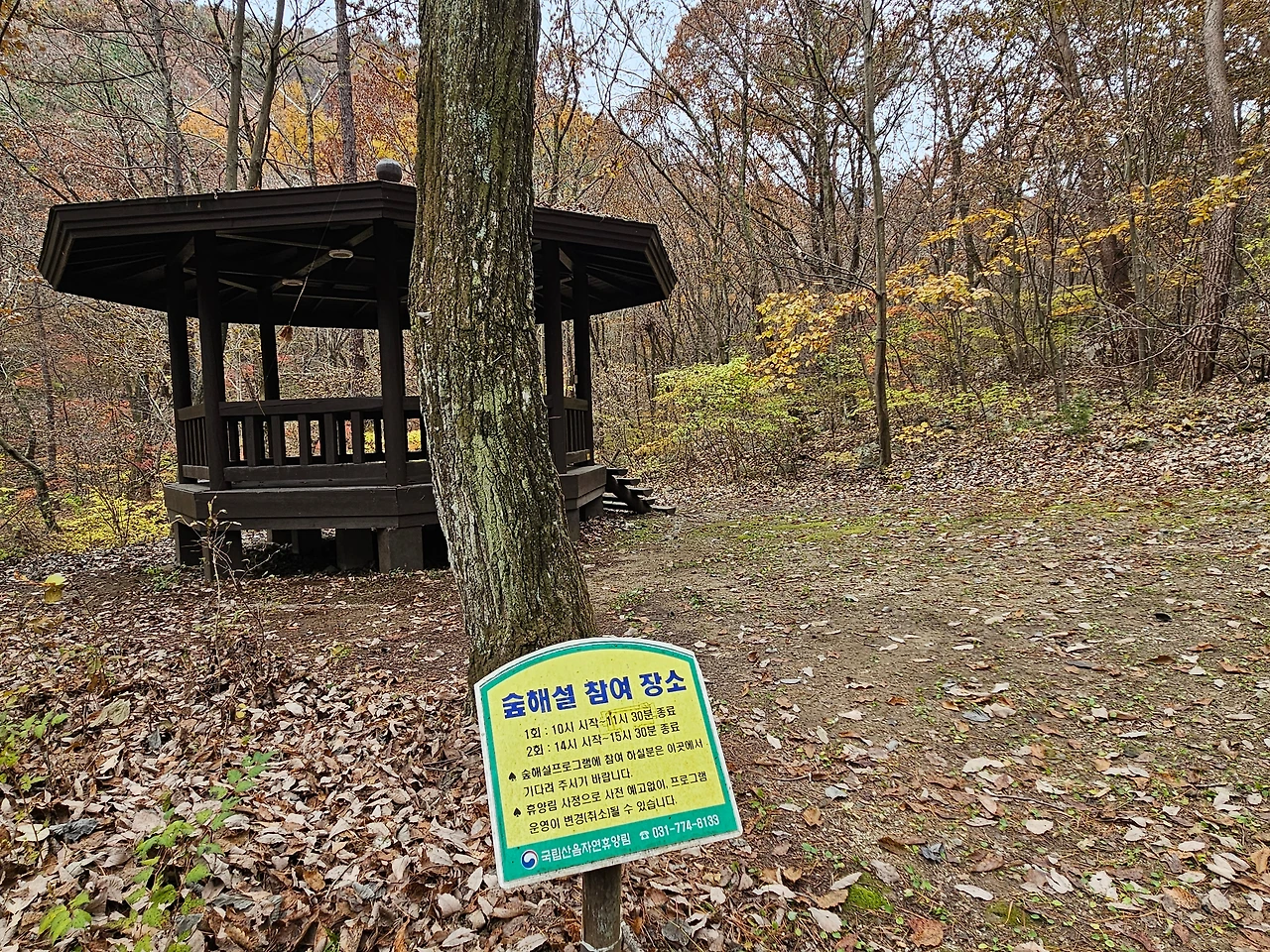 치유센터 아래에는 작은 정자가 있었는데, 여기서는 숲 해설 프로그램이 진행된다고 적혀있었다. 오전 10시와 오후 14시에 이곳에 모이면 1시간 30분 정도 숲길을 걸으면서 숲 해설을 해준다고 한다. 특히 이곳에는 산책로가 잘 정비되어 있어서 편안하게 숲 해설사의 이야기를 들으면서 자연을 배울 수 있다고 한다. 우리 가족은 숲 해설 대신에 잠시 정자에 앉아서 계곡 소리를 즐겼다. 눈을 감고 조용히 숲을 즐기는 명상. 멍하니 새소리와 물소리, 바람 소리를 듣고 있노라니 모든 스트레스가 사라지는 그런 기분이었다. 그것만으로 나는 행복했다.