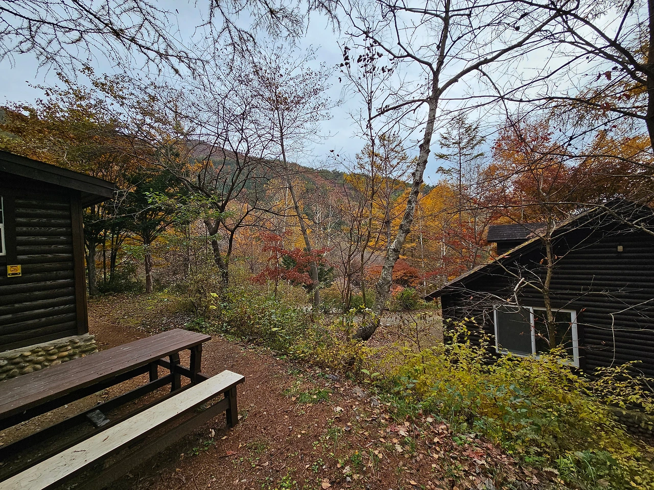 3 인동을 지나면 산 쪽 비탈진 곳에 규모가 좀 큰 방들이 있었다. 아마도 4인실 숲 속의 집으로 보였다. 다람쥐동, 오소리동, 산토끼동, 너구리동, 반달곰동, 고라니동이 줄지어 나왔다. 산 쪽 숲에 둘러싸여 있어 독립적이지만 계곡과는 조금 떨어져 있는 단점이 있었다. 근데 이 근처의 단풍 색깔은 휴양림 내부에서 가장 아름다웠다. 빨갛게 물든 단풍나무가 그 앞을 지키고 있었고 우리 가족뿐만 아니라 근처에 숙박하는 사람들 다수가 이들 나무 앞에서 사진을 찍는 모습이 눈에 들어왔다. 조금 더 뒤로 올라가면 숲 속의 집 규모가 조금 더 커졌는데 추정하건대 7~8인이 머물 수 있는 공간으로 보였다. 사실 우리 가족도 4년 전에 산음 자연휴양림에 들린 적이 있는데 그 당시에는 소나무방에 머물면서 바로 앞의 계곡으로 내려가 가재를 잡았던 기억이 있었다.