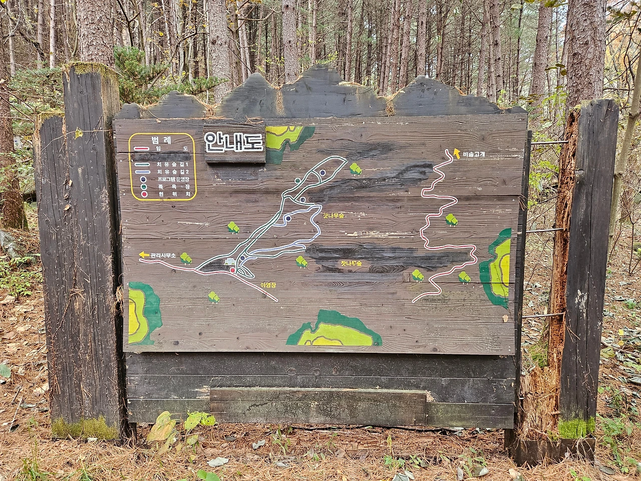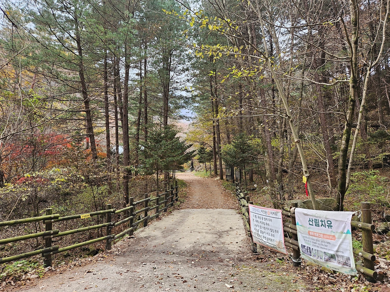 야영장에서 조금 더 내려오니 산림 치유 센터가 눈에 보였다. 이곳은 1990년대 후반 조성되어 우리나라 산림치유의 시작점이 된 최초의 치유 숲이라고 한다. 전나무 숲을 걸으면서 향기를 맡으며 피톤치드와 자연의 소리를 체험하며 힐링하는 공간이라고 보면 된다. 2~3개 코스로 이루어져 있고 혼자, 또는 사랑하는 사람들과 길을 걸으며 자연을 즐기기가 부족함이 없어 보였다.
