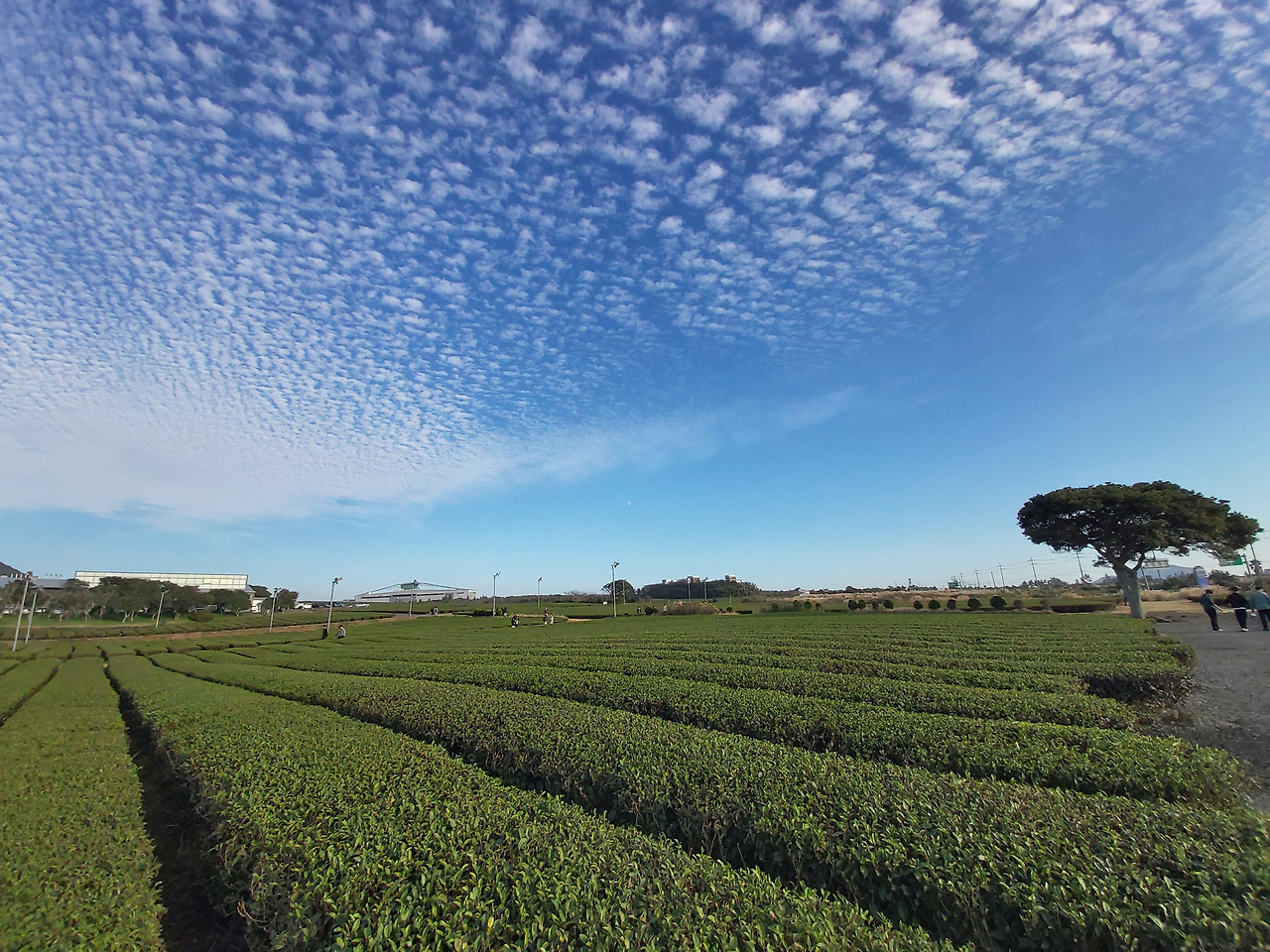 티 뮤지엄이 있는 곳은 서광 차밭이 있는 곳으로 예쁜 카페와 정원, 상품 판매점이 모여 있어서 제주를 찾는 많은 관광객들에게 인기가 많은 곳이다. 우선 우리는 한라산 정상이 보이는 차밭에서 사진 몇 장을 찍었다. 미세먼지가 사라진 가을 하늘에 양떼구름이 지나가면서 그린 멋진 풍경을 담았다. 다시 카페로 자리를 옮겨서 녹차 아이스크림과 음료를 마시며 여유를 즐겼다. 과거 제주를 찾을 때는 일정에 쫓겨서 오설록에서 많은 시간을 보내지 못했지만, 이번에는 달랐다. 여유 있게 우리 가족 모두가 은은한 녹차향을 즐겼다.