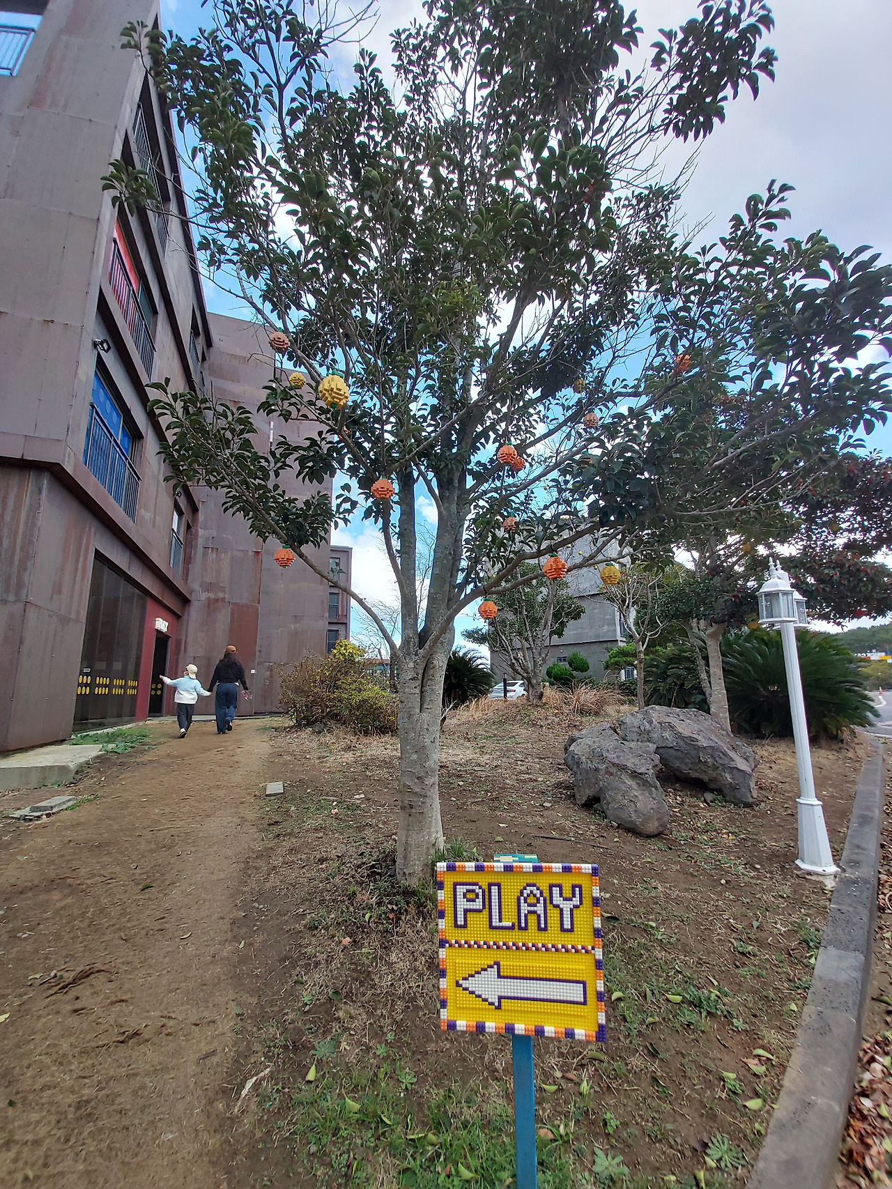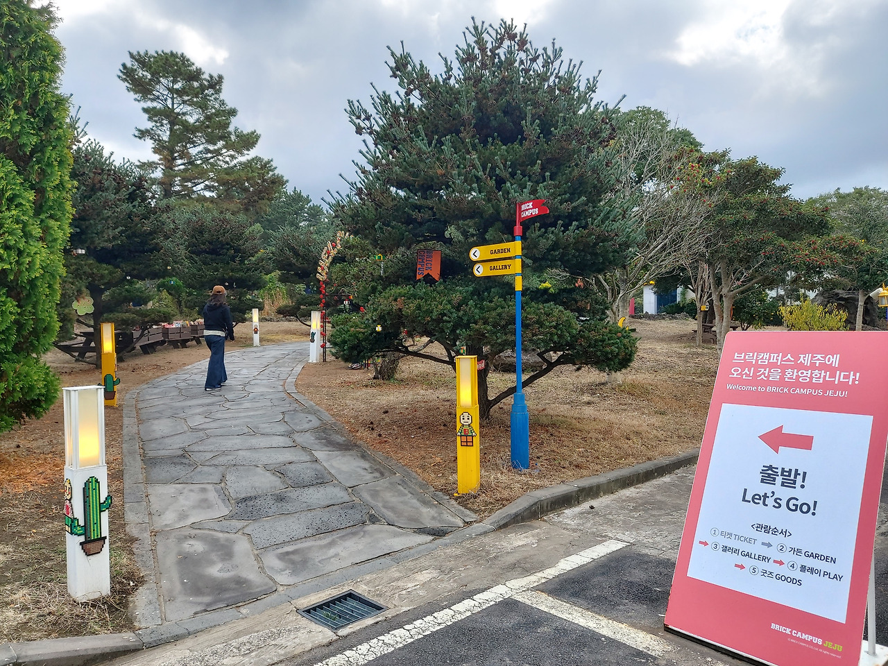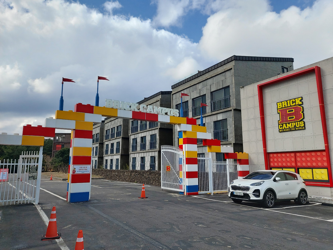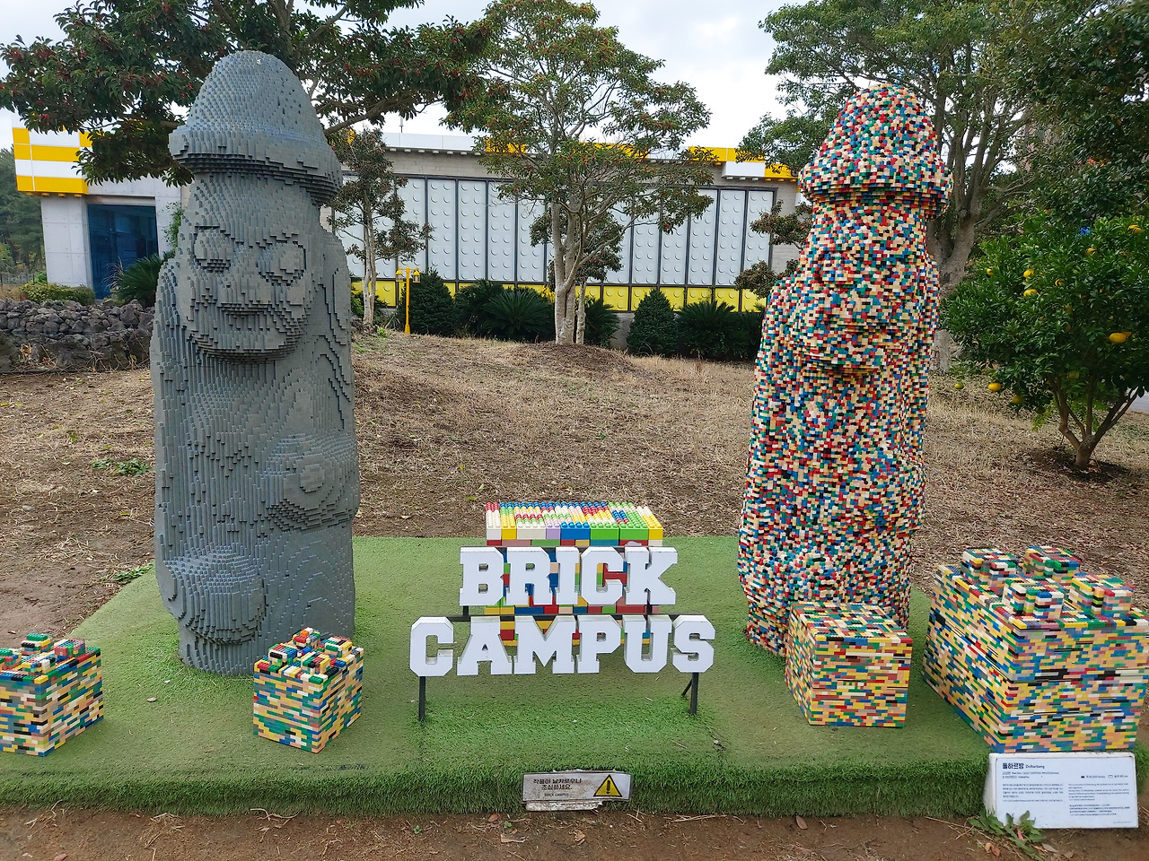 오늘은 아들의 간절한 요청으로 '브릭 캠퍼스 제주'를 찾아갈 준비를 했다. 평소 레고를 무척이나 사랑하는 우리 아들은 제주도에 내려와서도 브릭 테마파크를 꼭 가고 싶다고 나와 아내에게 몇 번을 이야기했다. 그 소원을 들어주기 위해 제주시에 있는 '브릭 캠퍼스 제주'로 향했다. 자동차를 타고 약 50여분을 달려서 아이가 고대하던 그 장소에 도착했다. 캠퍼스 입구에 커다란 'B'자가 한눈에 들어오면서 브릭 왕국처럼 '브릭 캠퍼스'라는 영문 글자가 입구에 쓰여있었다. 우리 아이는 설레는 마음으로 엄마 손을 잡고 캠퍼스 입구로 들어갔다. 입구에 들어서면 작은 정원이 나오는데 여기에는 브릭으로 쓴 다양한 말풍선과 포토존이 있었다. 특히 현무암색과 알록달록한 다양한 색으로 만들어 놓은 돌하르방이 시선을 끌었다.