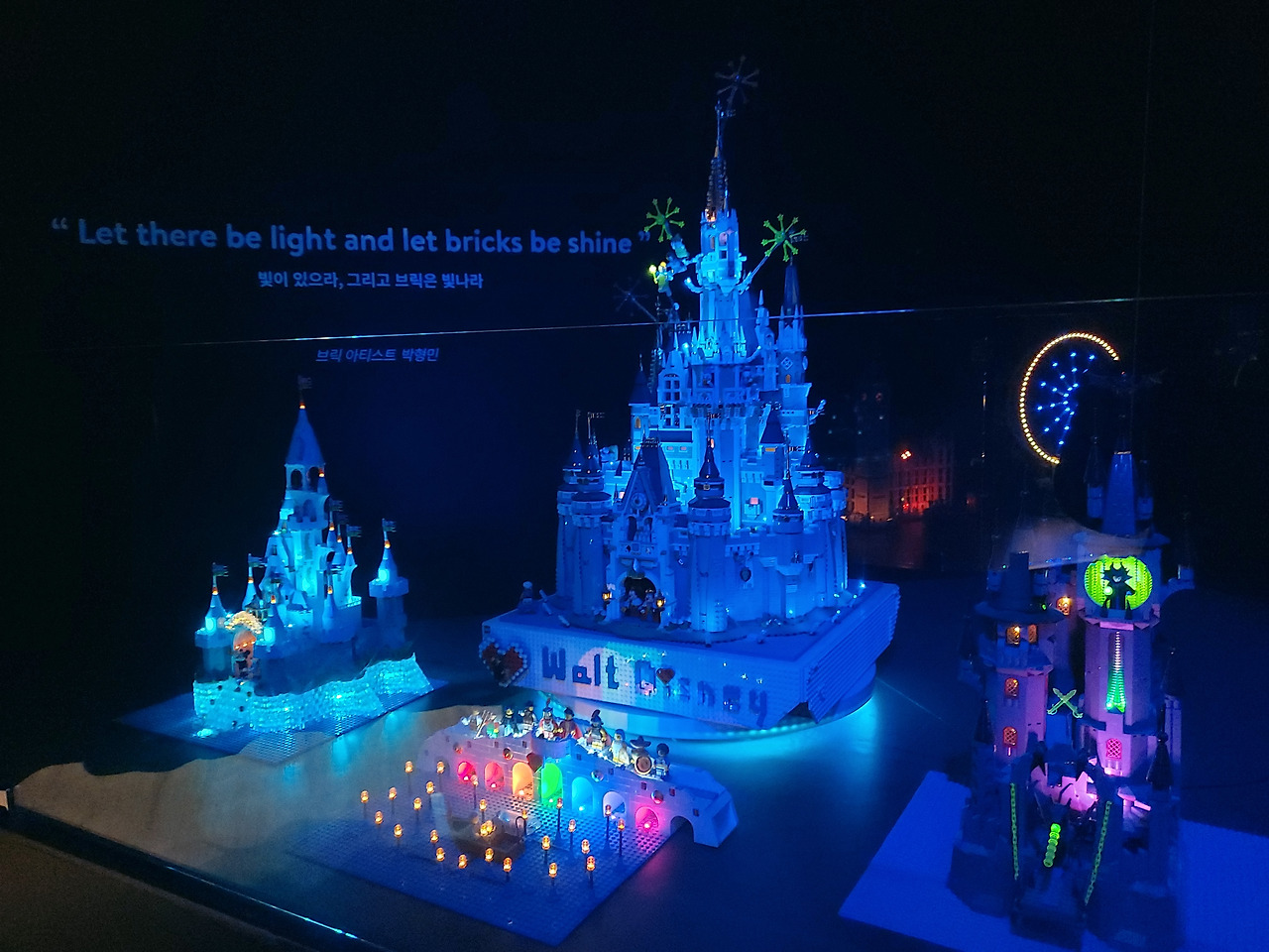 브릭으로 만든 제주도와 슬로건, 수도꼭지 작품 아이들을 포함한 다양한 관람객들도 감탄사를 환호하며 작품들을 감상했다. 특히 어둠 속에서 디즈니 성을 브릭으로 표현한 작품을 지나면서 많은 사람들의 셔터 소리가 이어졌다.
