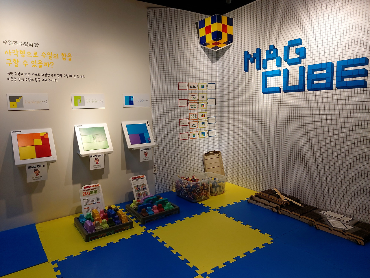 수에 대한 기본부터 공약수와 공배수, 피타고라스 정리와 수열, 3차원 공간 좌표, 함수까지 수학을 놀이와 체험으로 승화시켜 놓았다. 유치원생이나 초등학생들이 할 수 있도록 직관적으로 만들어 놓은 체험도구들은 절반 정도였고, 대부분을 이해하고 체험하려면 고등학생 수학의 이해도는 되어야 가능할 것으로 보였다.