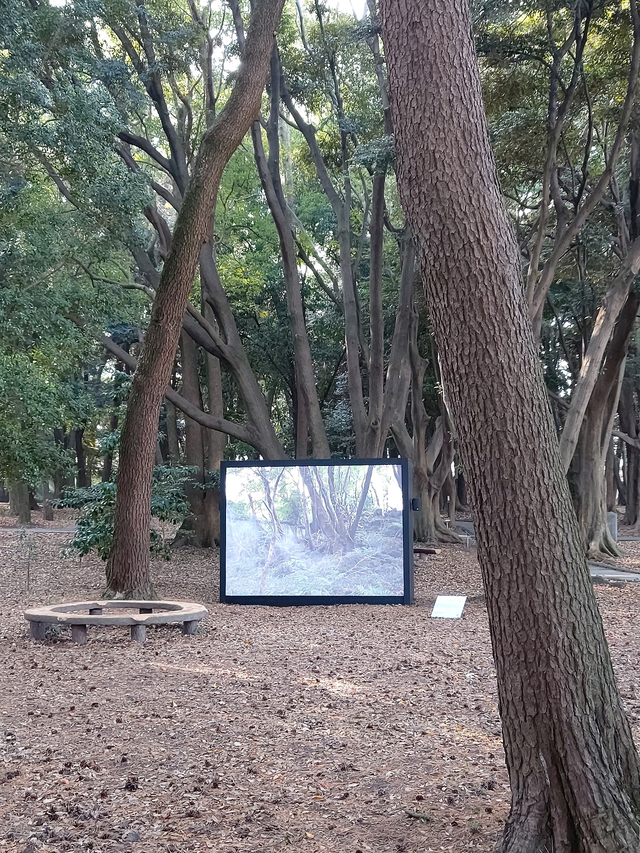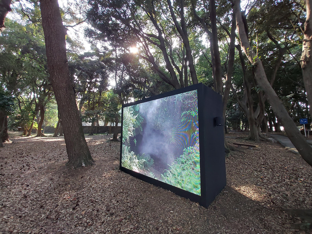 그 중 숲 속에 있는 '세 개의 문과 하나의 거울 1' 이라는 작품은 탐라 전설의 장소를 현실의 공간과 교차시켜 모호한 경계를 영화적 이미지로 표현했는데, 영상과 실제 숲의 조화가 오묘하고도 신비스러워서 나에게 매력적으로 다가왔다.