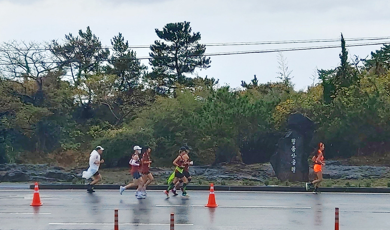 제주 국제 감귤마라톤 참가자들그 모습들이 대단하기도 하고, 날씨 때문에 안쓰럽게 보이기도 했다. 나는 집 앞으로 나가서 큰 소리도 "파이팅"하며 지나는 사람들에게 박수를 힘차게 쳐주었다. 몇몇 사람은 달리면서 나를 바라보고 살짝 인사를 해주기도 했다. 30분 정도 행렬이 끝나갈 무렵, 다시 반환점을 돌아오는 사람들도 보이기 시작했다. 아마도 하프코스 반환점을 돌아서 오는 사람들 같았다. 아까 큰 박수를 보내 주었던 사람들이 다시 지나가고 있었다. 다시 큰 박수로 그분들을 응원해 주었다. 특히 나이 드신 어르신분들은 정말 대단했다. 그 열정이 존경스러울 정도였다.