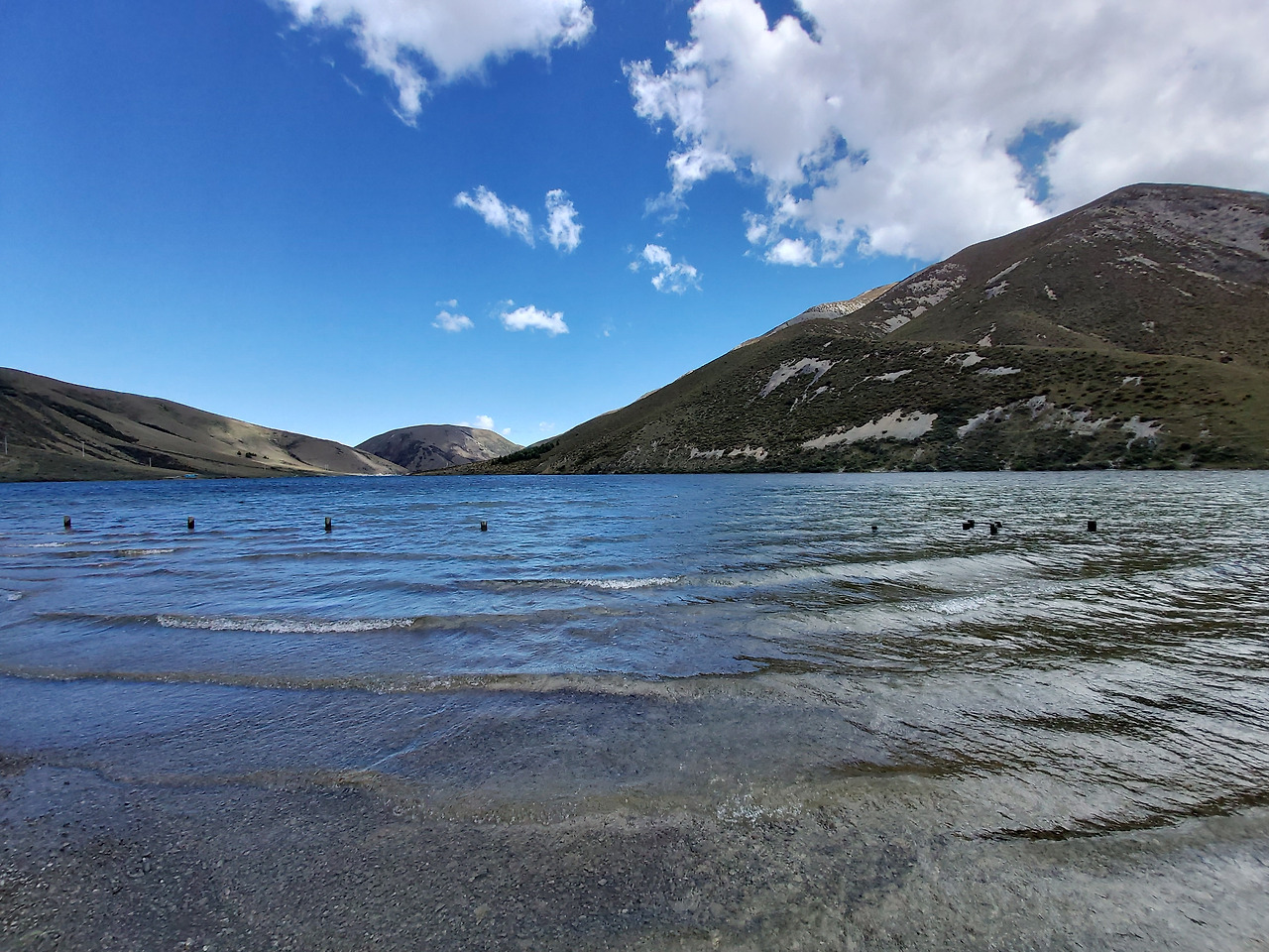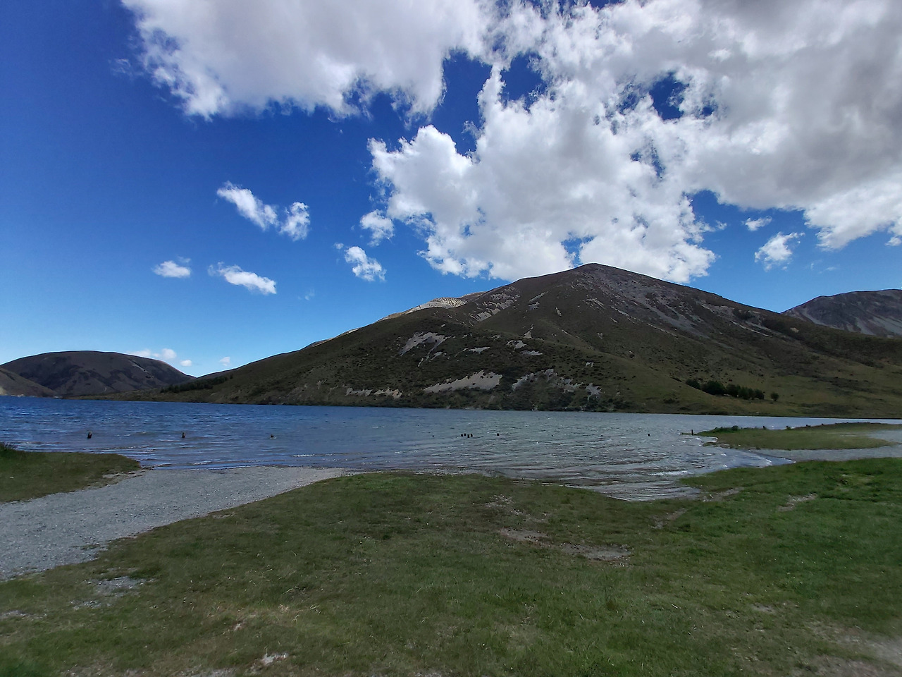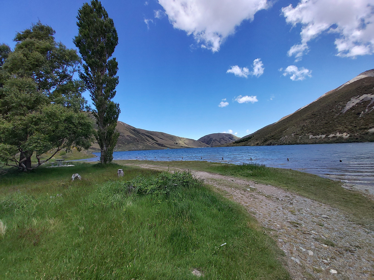 가는 길에 지나쳤던 린든 호수 (Lake Lyndon)에 잠시 차를 세웠다. 린든 호수는 캐슬 힐 (Castle Hill)과 포터스 패스(Porters Pass) 중간에 위치한 산 위의 호수였다. 파란 하늘색을 물에 담아놓은 듯한 조용한 호수였다. 잠시 차에서 호수를 바라보는 것만으로도 평온함이 찾아왔다. 날씨가 덥다면 수영하기에도 괜찮아 보이는 호수였다.
