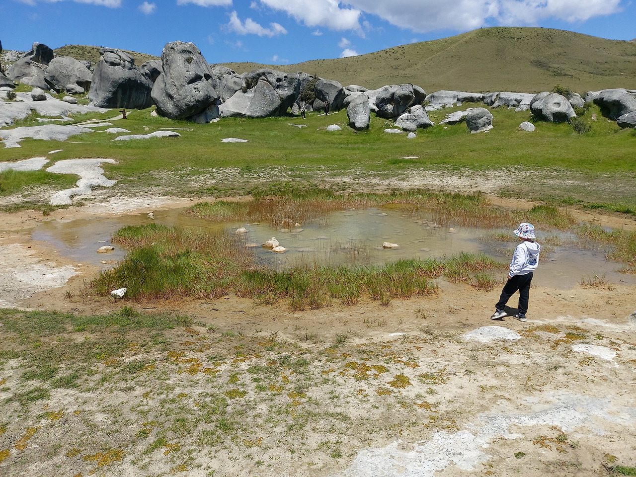 캐슬힐에서의 여유로운 시간자리에 않아서 주위를 둘러보니 뉴질랜드 현지인들이 삼삼오오 바위에 오르는 것이 많이 보였다. 2~3m 되는 바위에서 등반 연습을 하고 있었다. 아이부터 어른들까지 암벽 등반 초보자들을 위한 연습 코스로 최적의 장소였다. 바위들 중간 정도에 오니 작은 연못 하나가 있었다. 바위 울타리 사이에서 눈이 녹아서 고여 있는 물 같았다. 고인 물 답지 않게 맑고 투명한 것이 뉴질랜드의 자연 그대로의 모습을 보여주고 있었다.