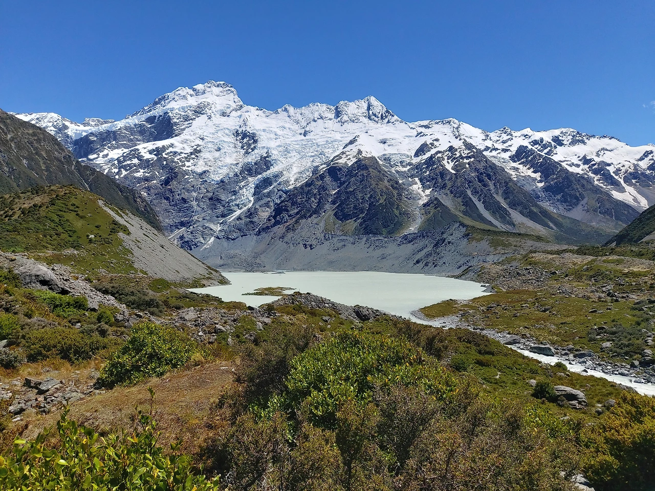 내려오는 길의 풍경도 너무나 아름다웠다. 이번에는 세프턴산과 계곡들 사이로 멀리 푸카키 호수를 한눈에 바라볼 수 있었다. 중간중간에는 빙하가 만들어낸 작은 계곡과 샘물들도 있었다. 왕복 2만보를 걸으며 후커 밸리 트래킹을 마쳤다. 모든 것이 평생 잊지 못할 광경들이었다. 이곳에 찾았다는 것이 너무나 기뻤고, 자연이 준 선물에 너무나 감사했다.