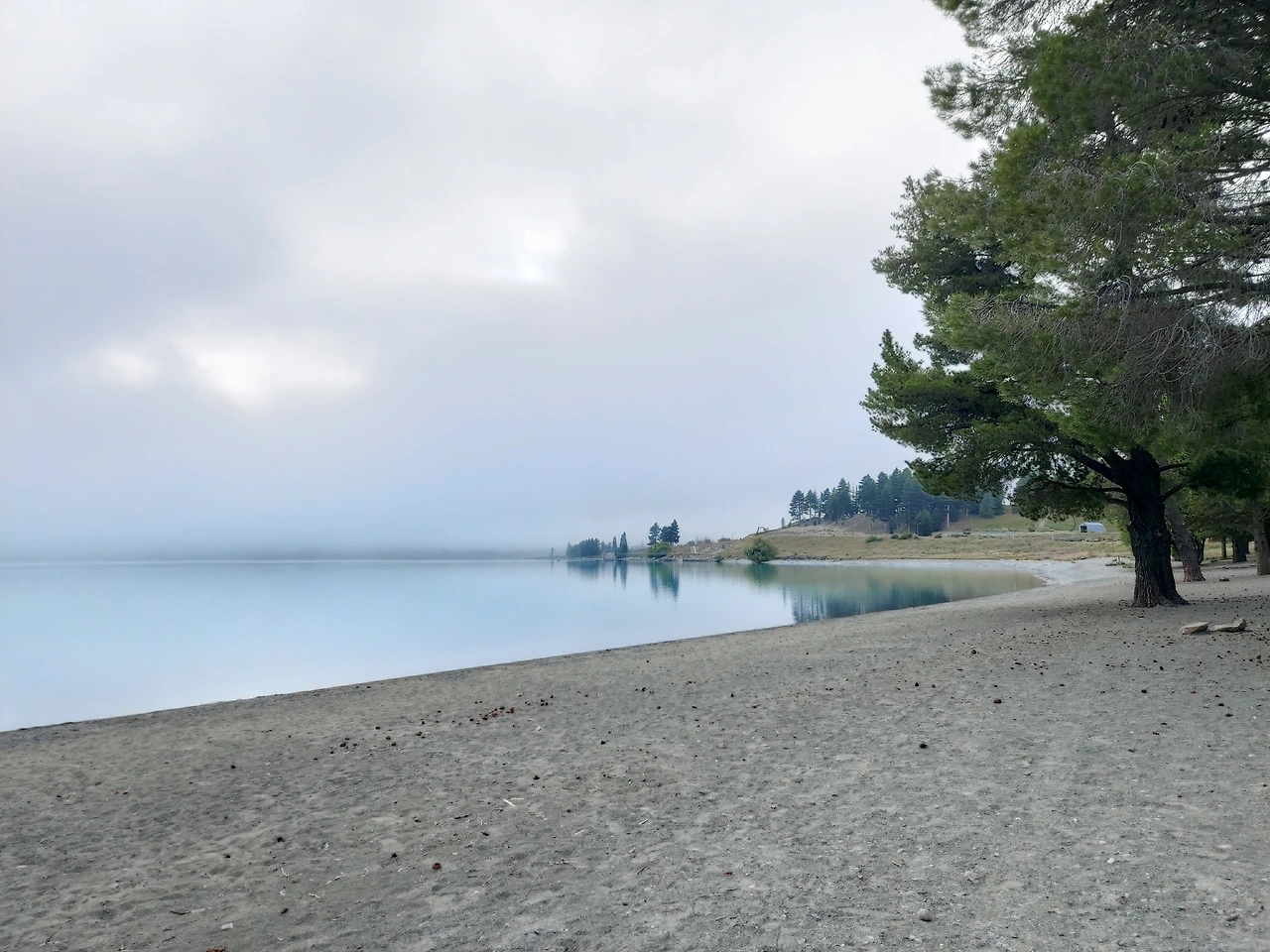 나는 일찍 잠에서 깨어 조용히 호수가를 걸었다. 이른 아침 테카포 호수에는 물안개가 자욱이 끼어 있었다. 아침을 알리는 새소리만 들릴 뿐, 테카포 호수는 정적만이 가득했다.
