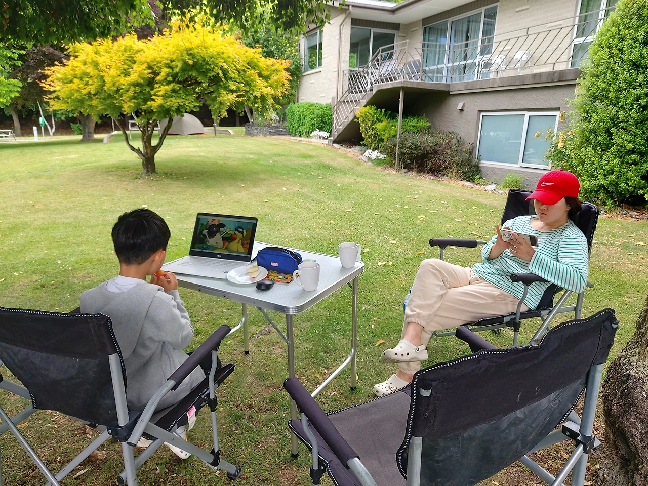 퍼즐링 월드를 나와서 우리는 와나카(wanaka) Top 10 홀리데이 파크로 향했다. 여전히 예약을 하지 않았다. 방문해서 물어보니 평일이라서 넉넉히 자리가 있다고 했다. 우리는 25번 사이트를 배정받아서 캠핑카를 주차했다. 먼저 전원 케이블을 연결하고 근처의 잔디밭에 의자와 테이블을 폈다. 와이파이도 빵빵하게 잘 터져서 밀렸던 인터넷을 하고, 아이도 넷플리스로 만화 영화를 즐겼다. 나는 잠시 홀리데이 파크 주위를 둘러봤다. 호수에서 조금 떨어져 있어서 호수 뷰는 아니었지만, 정원이 깔끔하게 잘 정리된 홀리데이 파크였다. 여유 있는 차량 주차 공간과 함께 개인용 테이블이 잘 정돈되어 있었으며 관리하는 직원들 또한 친절했다. 식당과 TV 룸도 잘 준비되어 있고, 샤워실과 화장실도 최신식 시설이었다. 허브도 이용자들이 직접 따 먹을 수 있도록 식당 앞에 텃밭도 있었다. 홀리데이 파크에는 우리 말고도 한국에서 여행 온 가족들이 몇몇 보이는 듯했다. 오랜만에 한국말로 인사를 나누면서 뉴질랜드 여행 이야기를 나누기도 했다.