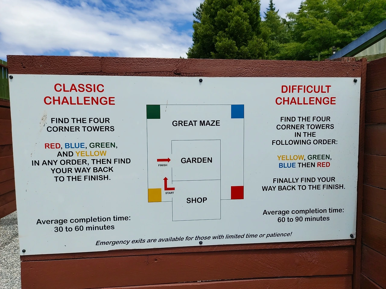 보통은 30분에서 1시간 걸리는 코스. 처음에는 우습게 생각하고 미로를 달렸는데, 마지막에는 정말 '멘붕' 현상이 나타날 정도로, 미로 전체를 빙글빙글 몇 바퀴 돌아야만 출구를 찾을 수 있도록 만들어놓았다. 다행히 현명한 아내의 도움으로 50분 정도 걸려서 출구까지 나올 수 있었다. 미로 찾기의 힌트를 준다면 '결코 가까이에는 답이 없고 먼 길을 돌아야만 가까운 길을 찾을 수 있다.' 바로 이것이었다.