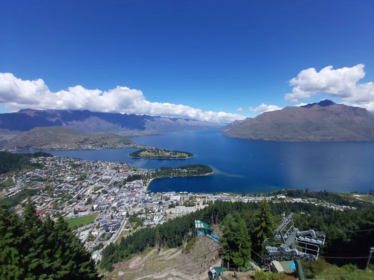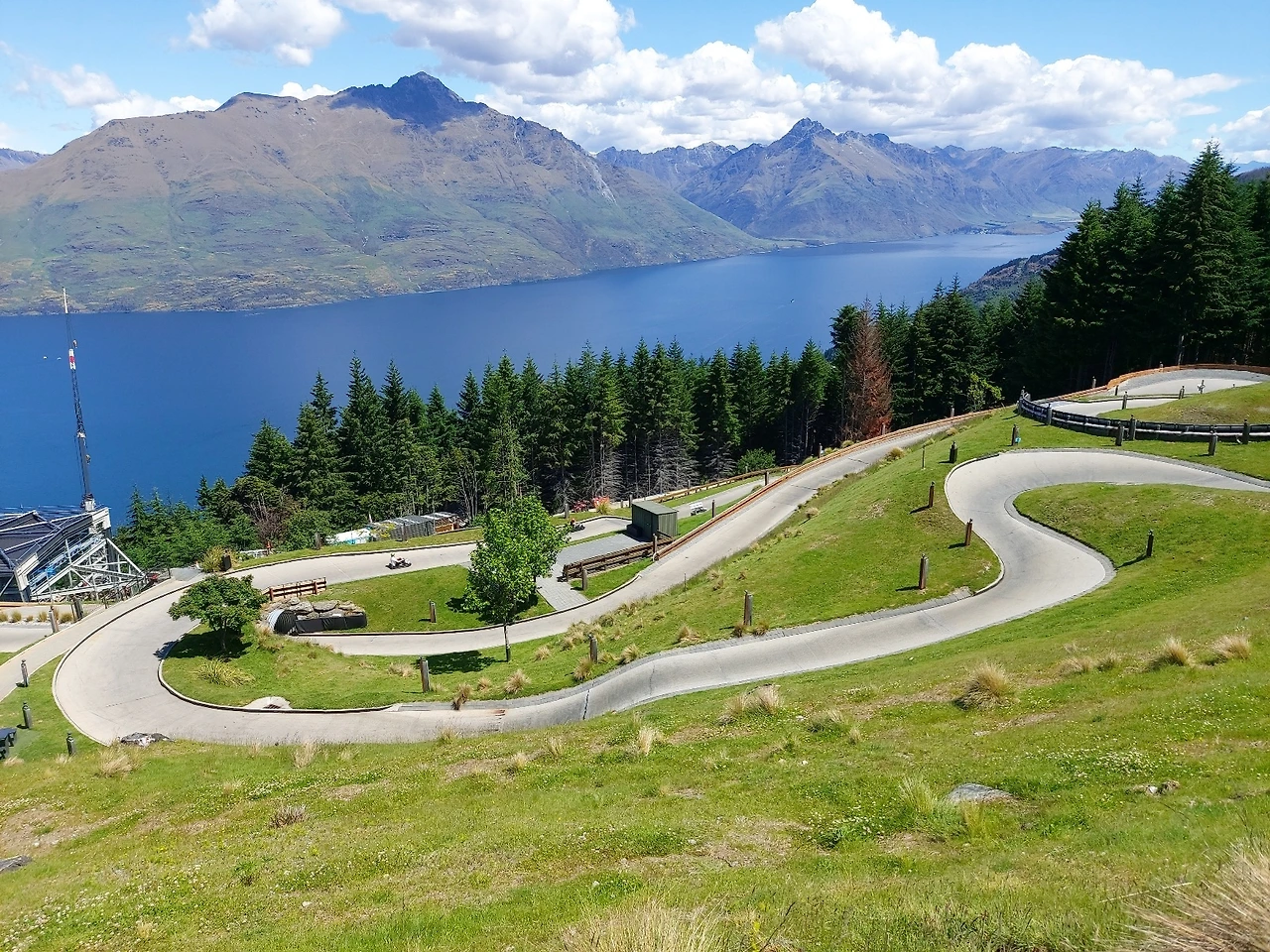 터널 워크 전망대(historic tunnel walk lookout)퀸스타운으로 돌아와서 간단히 점심을 먹고 퀸스타운 전경을 볼 수 있는 스카이라인 곤돌라 탑승장으로 향했다. 오후 일정은 곤돌라를 타고 곤돌라 피크 올라서 정상에서 루지(luge)를 타는 것이었다. 몇 번을 탈까 고민하다가 우리는 5회 사용권을 구매했다. 곤돌라 왕복에 3인 루지 5회 이용권 가격은 208불(약 17만 원)이었다. 그리고 곤돌라에 올랐다. 깎아지는 절벽을 곤돌라는 빠른 속도로 올랐다. 뒤를 돌아보니 서서히 퀸스타운 시내와 호수, 그리고 거대한 산들의 형상이 눈앞에 들어왔다. 그리고 약 5분 정도를 올라서 정상에 도착했다. 그림 같은 풍경이 그대로 펼쳐졌다. 풍경 감상을 마치고 우리는 전망대 위쪽에 있는 루지 타는 곳으로 올랐다. 루지를 처음 타는 사람과 다시 타는 사람 줄로 나뉘었다. 우리는 처음 타보는 쪽으로 줄을 섰고, 간단한 루지 교육을 받고 코스를 달렸다. 퀸스타운 루지에는 2개 코스가 있는데, 초보자(Arrow)용과 상급자(Dart)용으로 나누어져 있었다. 아이와 함께 타는 사람은 초보자용인 애로우 코스만을 탈 수 있었다. 우리 가족은 애로우 코스와 다트코스를 번갈아가면서 달렸다. 처음에는 익숙지 않았지만, 3번째부터는 서너 팀을 추월하면서 탁월한 실력을 발휘할 수 있었다. 멀리 호수를 바라보면서 루지 달리는 기분은 정말 끝내줬다.