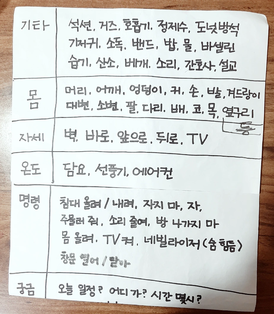 여기까지 슬기로운 간병생활 1탄, '의사소통' 편을 마치려고 해요 :)
