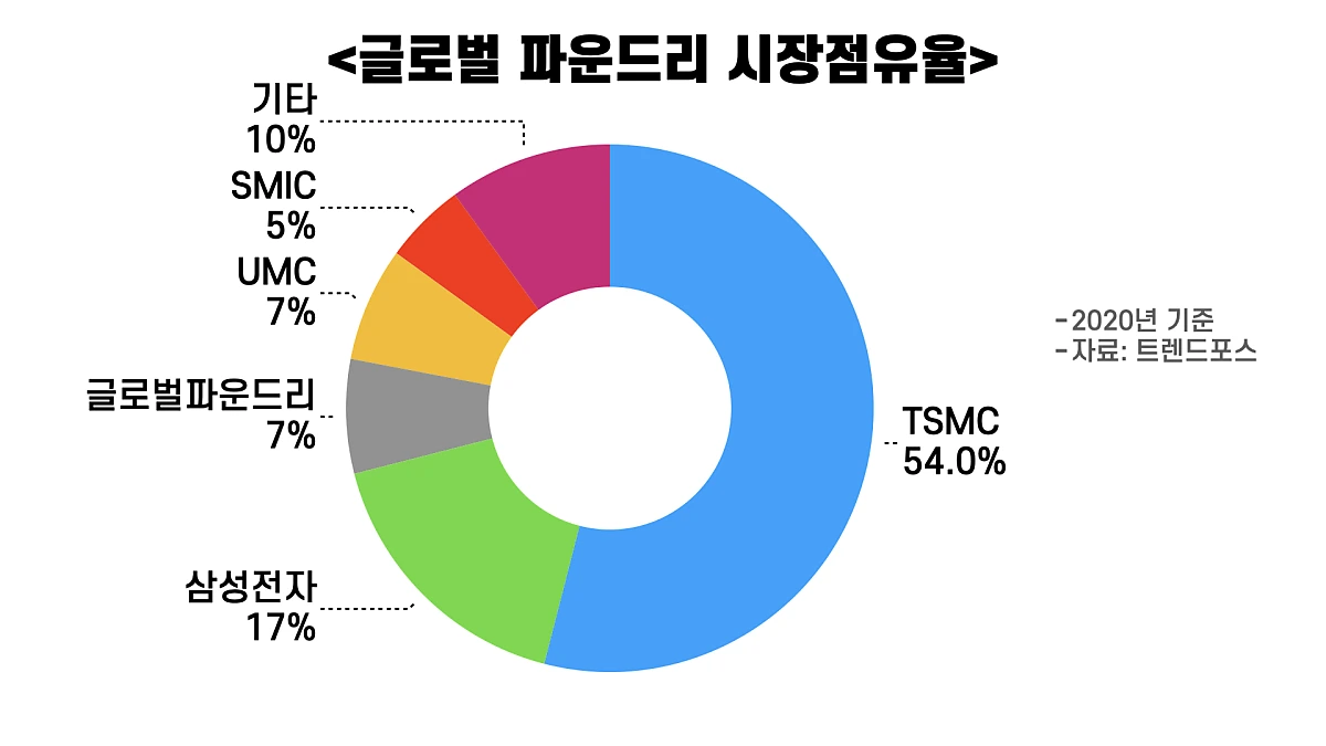 특히 최첨단 반도체인 5나노 이하 반도체 생산은 TSMC와 삼성전자가 현재 유일합니다. TSMC와 삼성전자는 수주 경쟁을 위해 더 세밀한 공정 기술 개발을 앞다투고 있죠. 물론 지금은 워낙 반도체 생산 주문이 많아 주문이 밀려 있는 상황이긴 합니다.