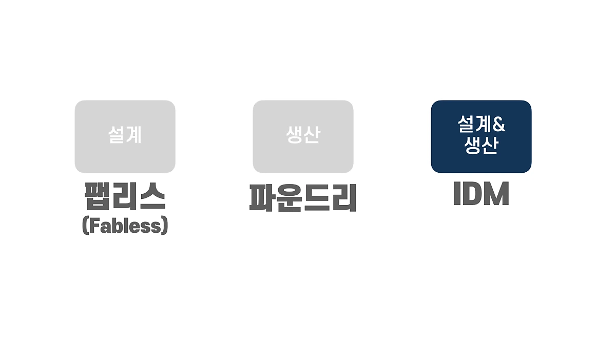 우리가 제일 잘 아는 국내 반도체 기업 삼성전자는 설계와 생산을 자체적으로 모두 하는 IDM기업이자 다른 기업이 설계한 반도체를 생산도 해주는 파운드리기업입니다.