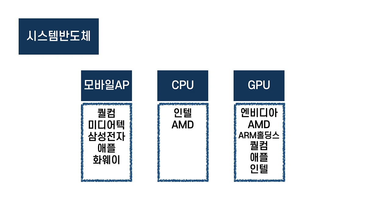 반도체 종류에 따라서 기업을 또 나눠볼게요.