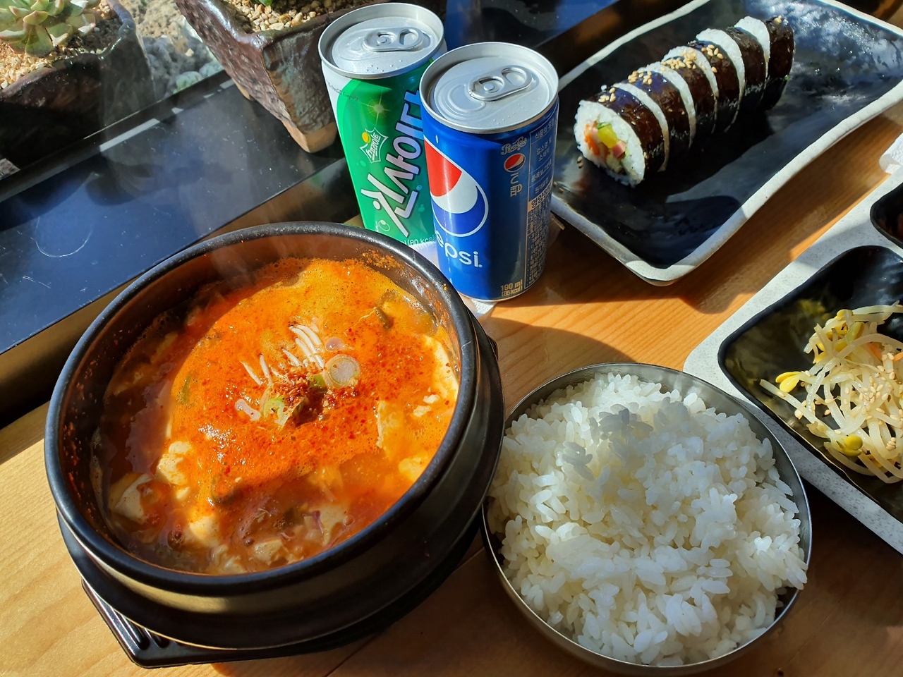 ‘만 원 이하 음료수 한 캔, 만 원 이상 음료수 두 캔 서비스’라는 문구에 당당히 손을 들었다. 그런데 어찌 된 일인지 주인아주머니의 표정이 떨떠름했다. 콜라·사이다 한 캔씩을 건네받은 뒤에도 뭔가 잘못됐다는 생각에 안내 팻말을 뚫어지게 쳐다봤다. 아, 순번을 매겨놓은 것처럼 멀찍이 떨어진 숫자 탓에 ‘1만 원 이하 주문시 콜라 한 캔 / 2만 원 이상 주문시 콜라 두 캔’임을 못 알아본 것이다. 의도하진 않았지만 생떼 손님이 된 듯 민망했던 마음은 막바지로 끓고 있는 순두부찌개의 등장과 동시에 녹아내렸다. 천국에서도 맛볼 수 있는 두 메뉴 모두 군더더기 없이 맛있었다.