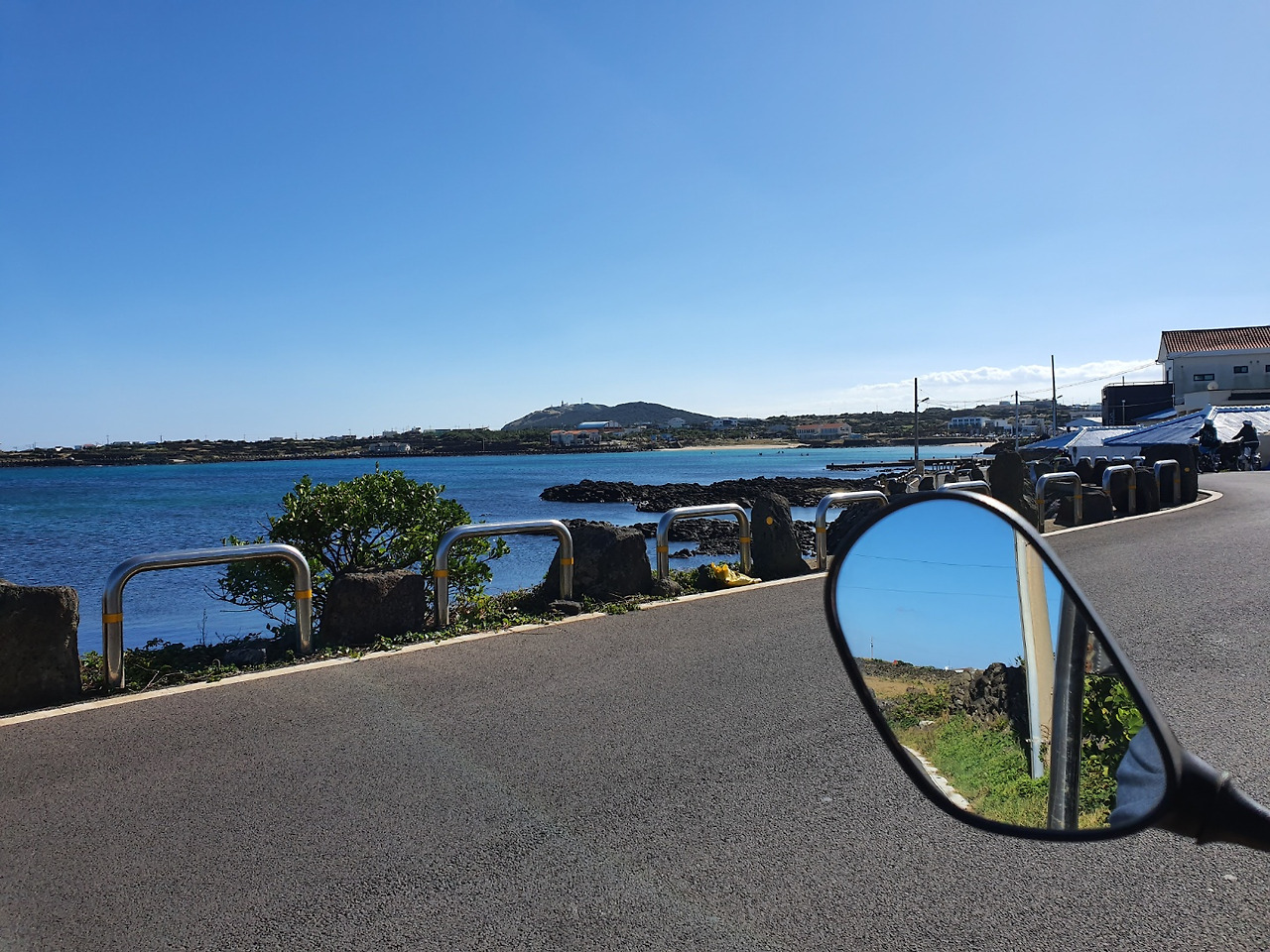 쌍둥이 전기차들 사이에서 우리의 것을 단번에 알아볼 수 있을 정도가 되자 어느덧 떠날 시간이었다. 중간중간 기프트숍, 포토존을 들러 기분을 냈고 주민이 거주하는 구역에서 길을 헤매기도 했다. 전기차 키를 반납하고 헬멧을 벗는 순간, 무사 귀환의 안도감에 웃음이 났다. 다시 봉고차에 올라 터덜터덜 하우목동항으로 향했다. 진동과 거품이 떠들썩할수록 시야에서 멀어지는 우도를 바라보자니 떼놓고 이별하는 마음이 들었다. 지구를 한 바퀴 도는 것처럼 끝나지 않을 것 같던 우도의 하루는 순간 고요해진 바람처럼 잦아들었다.