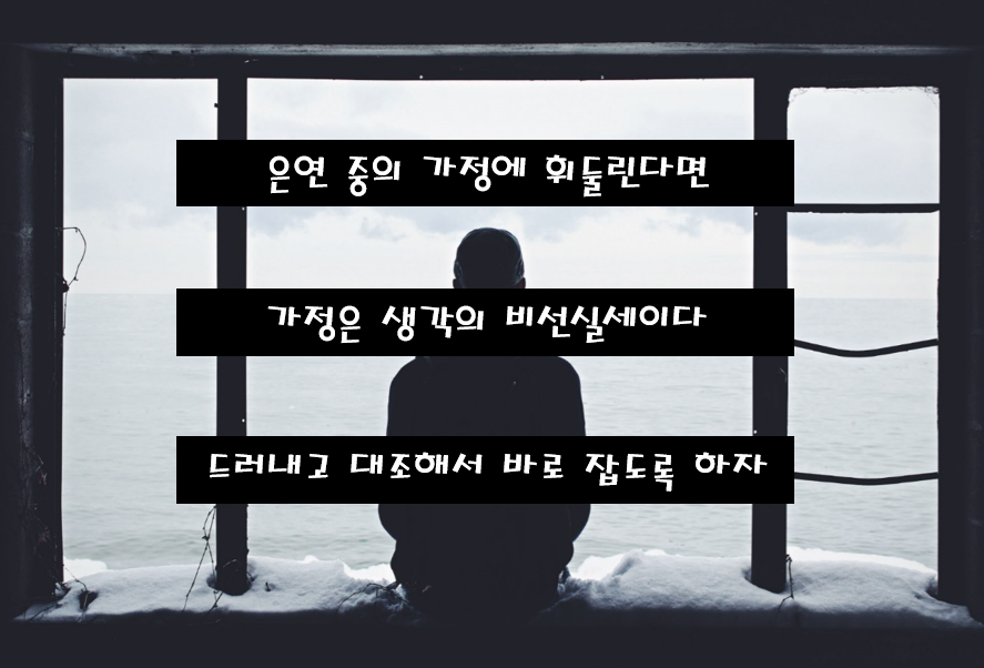 이와 같이 표면적으로 드러난 생각이나 행동의 기저에 깔려 있는 믿음 또는 가정을 파악하고, 이를 합리적으로 바꾸는 것은 중요하다. 공부할 때도 문제가 잘 풀리지 않는다면 자신이 이 문제에 대해 가지고 있는 가정들이 무엇인지를 곰곰 생각해 볼 필요가 있다. 문제가 잘 풀리지 않을 경우 자신이 문제에 대해 갖고 있는 가정이 잘못되어 있는 경우가 많다. 자신의 생각에 깊숙히 들어가 가정을 파악하는 것은 결코 쉽지 않지만, 좋은 성적을 얻기 위해서는 반드시 필요하다.