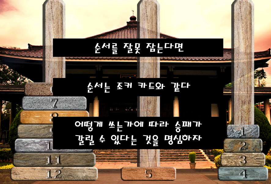 이와 같이 어떤 일을 하기 위한 행동의 순서는 때로 그 일의 결과에 치명적인 영향을 주기도 한다. 공부를 할 때도 순서의 중요성을 염두에 두고 공부 계획을 짜거나, 문제를 풀 때 그저 생각나는 순서대로 처리할 것이 아니라 시간을 단축하거나 또는 앞에 한 것이 뒤에 한 것에 긍정적인 영향을 미칠 수 있도록 하기 위해서는 어떤 순서가 효과적일 지를 고민하는 습관을 들이는 것이 바람직하다.