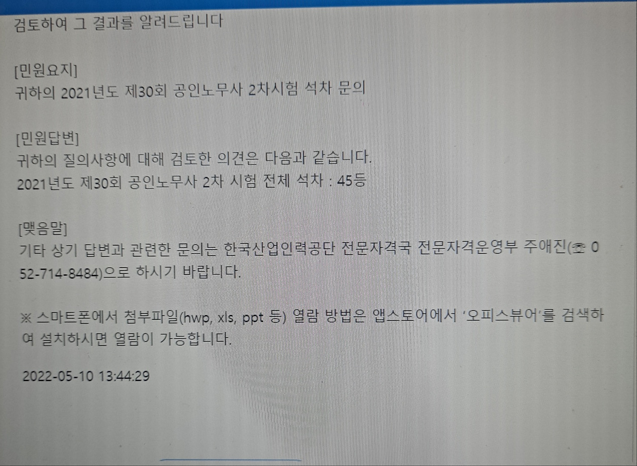 그러나 나는 실제 시험에서 합격자 322명 중 45등으로 합격했다.