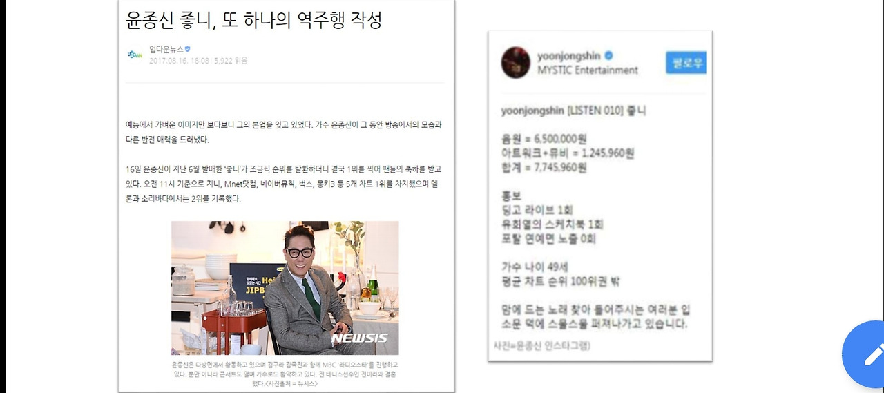 20여 년의 가수 생활을 하면서 눈에 띄는 성과를 보여주지 못했던 가수 윤종신도 SNS를 통해 대박을 이루어낸 사례이 다. 그가 음원 홍보를 위해 했던 것은 대형 페이스북 페이지 딩고에서 라이브 1회와 유희열의 스케치북에서 1회 방송한 것 뿐이다. 그가 음원 제작비로 사용한것은 700여만원, 그외에는 입소문처럼 SNS를 타고 스물스물 퍼져나간것 뿐이다.