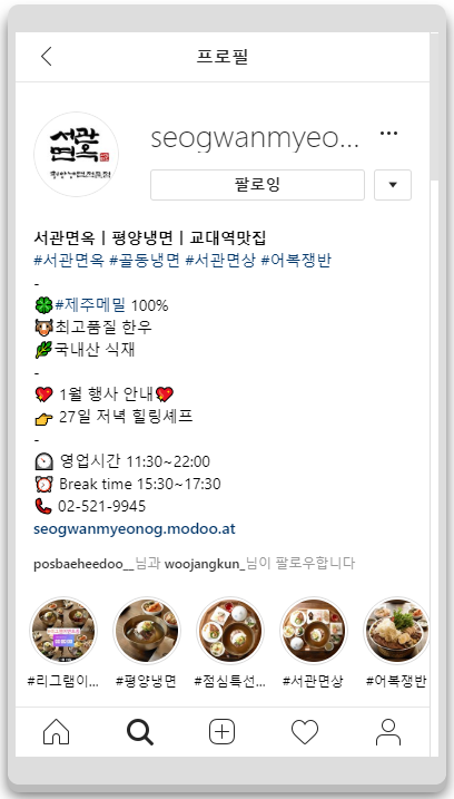서울 교대역에 위치한 평양 요리 전문점 서관 면옥은 2018년 6월에 오픈한 매장으로 인스타그램으로 고객들과 소통하는 곳이다.