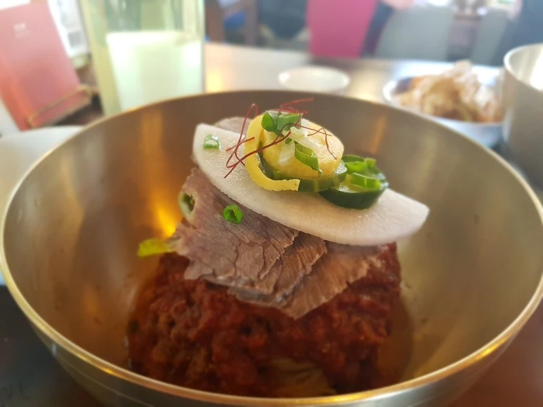 이른 저녁시간에 방문해서 혼자 선비냉면을 주문하여 감 미로운 음악과 내부 물리적 환경을 구경하면서 냉면을 즐 기게 되었다.