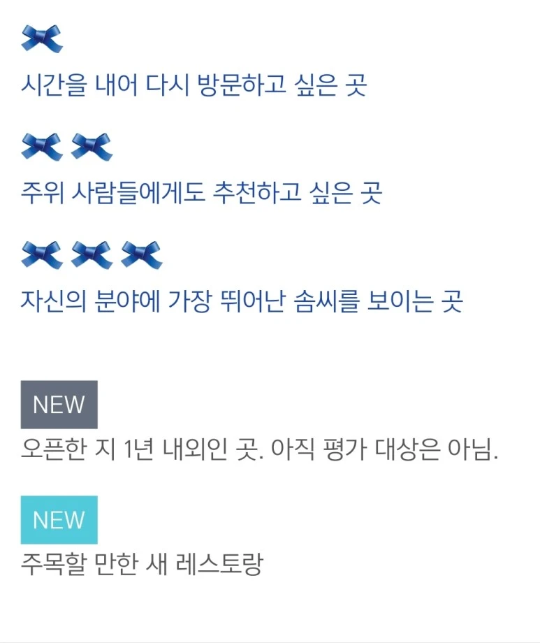세계적으로 유명한 미쉐린 가이드와 같은 기준에 따라 레스토랑을 평가하고 소개하는 레스토랑 가이드 ’블루리본 서베이’