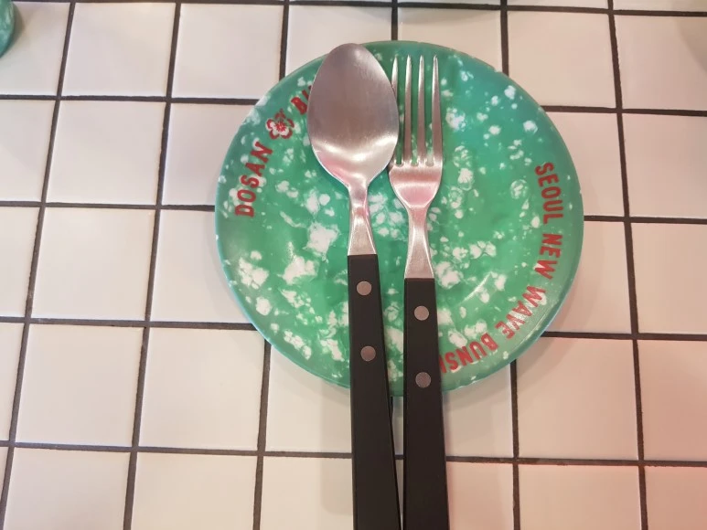 눈길을 끌었던 것은 1980~90년대 학교 앞 분식점에서나 보던 초록색 점박이 플라스틱 접시와 컵을 사용하며 지금은 단종된 델몬트 오렌지 쥬스병에 구수한 보리차를 담아 내주었다.