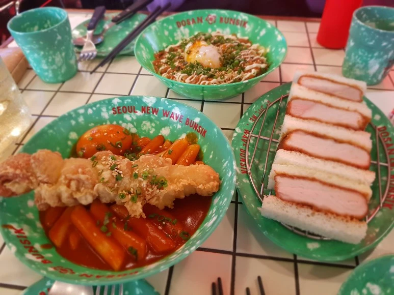 복고풍 분식점 콘셉트의 도산분식에 오게되니 배고픔에 늘 물로 배를 채웠던 학창시절 인심 넉넉한 작은 분식점에 서 친구들과 삼삼오오 모여 떡볶이와 오뎅을 나눠 먹던 행복했던 추억을 잠시나마 회상해볼수 있던 시간이었다.