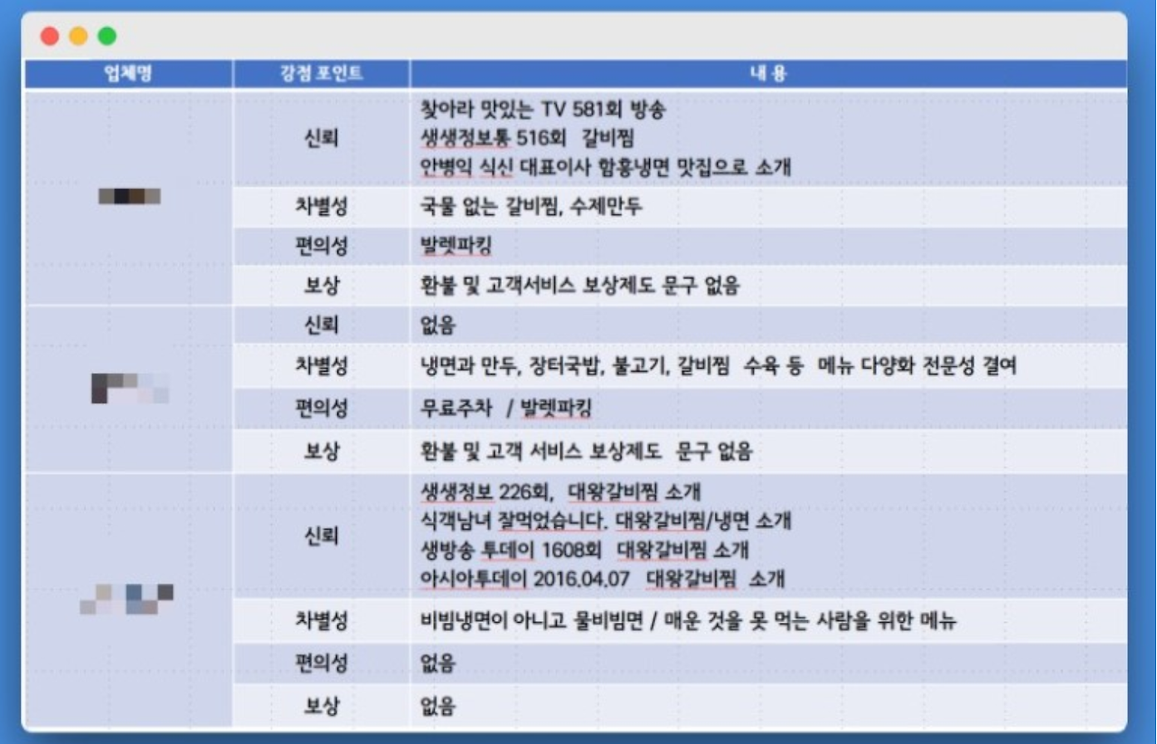 경쟁사의 강점 포인트와 약점은 무엇인지? 그리고 우리 가게에서 해줄 수 있는 포인트는 무엇인지 고민해 보는 것이다.