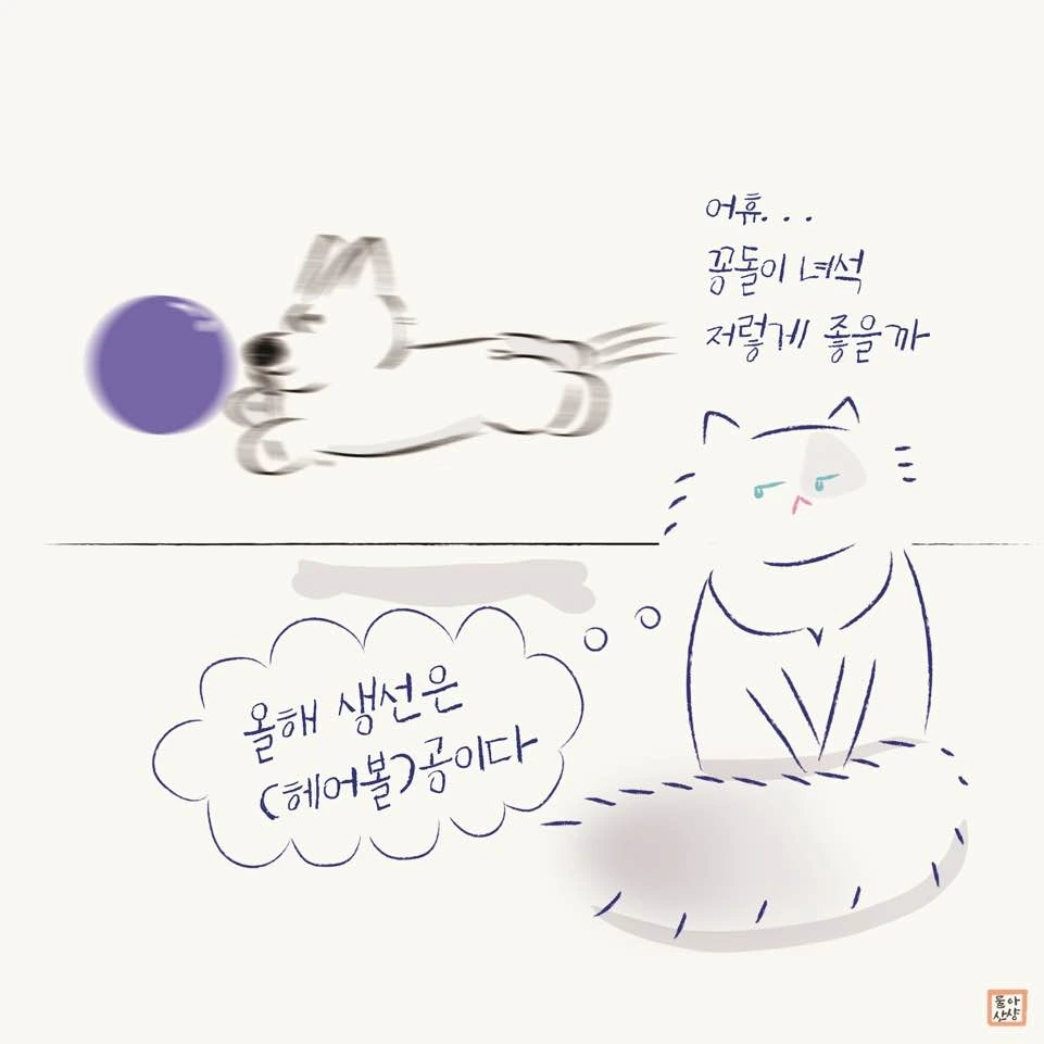 공이면 사족을 못쓰는 봉이와 그 모습을 지켜본 헤어볼 장인 뭉이. ͡° ͜ʖ ͡°