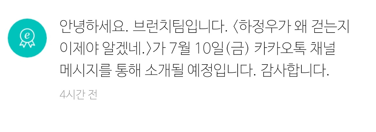이 글을 쓰고 처음으로 '작가에게 제안하기'를 받았다. 그리고 브런치 작가 코붱님의'글 읽는 밤'에 신청했고, 7월 29일 유튜브에 방영된다고 했다. 이번엔 카카오톡 채널을 통해 소개까지 될 예정이다. 글감을 제공한 배우 하정우 님에게 절이라도 해야겠다.