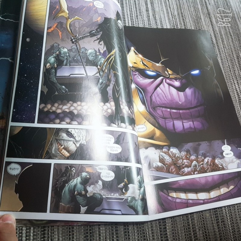 새로운 마블 코믹스 책이다. 타노스의 부하가 어떤 행성을 가서 가장 힘센 사람을 해치우고 곡물을 가져가는데. 그 곡물이 아이들이다.