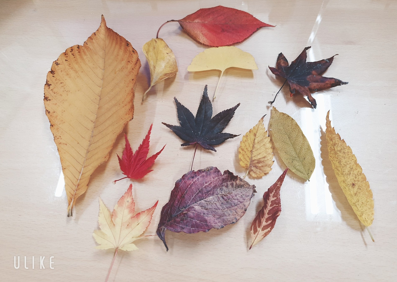 책상 유리 위에 모아 놓고 감상하니 같은 모양이라도 물드는 정도에 따라 그 빛깔이 모두 달랐다. 자연은 어쩜 이리 아름다운 색을 만드는 걸까. 알록달록한 모습을 따라 잠시 아스라한 추억 속으로 빠졌다.