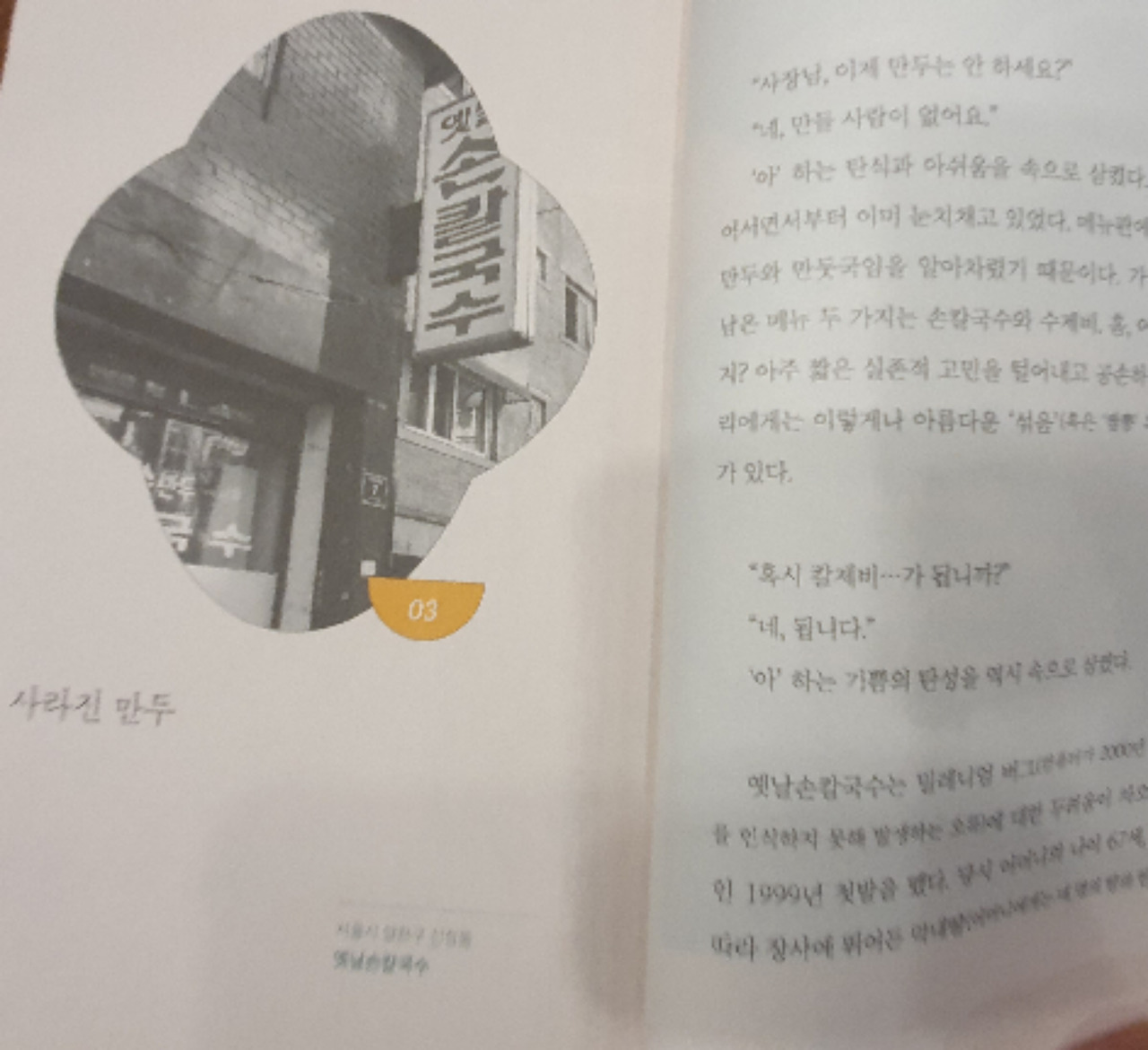 (엄마) 책을 읽고 우리 동네에도 식당이 있다는 것을 알게 되었다. 수도 없이 지나갔는데, 그곳에 있는 줄 몰랐다. 칼국수 집인데, 나중에 가보고 싶다.
