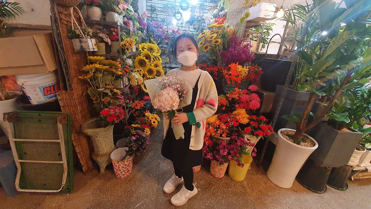 꽃시장은 지하에 있었다. 한눈에 들어올 정도로 규모는 작았다. 입구에 들어서자마자 사장님께 붙잡혔다. 현란한 말솜씨에 이미 아내와 둘째는 반쯤 넘어갔다. 한 바퀴 돌며 구경하고 싶었지만 이미 게임은 끝난 듯했다. 눈앞에 이렇게 예쁜 꽃이 있는데, 누군들 안 그럴까. 전부 사고 싶은 마음을 간신히 억눌렀다. 화이트데이 기념으로 꽃 선물을 주기로 약속했기에 선택은 둘째가 했다. 살구빛 수국과 분홍빛 안개꽃이었다. 이대로 돌아가기 아쉬워 주변을 둘러보았다.
