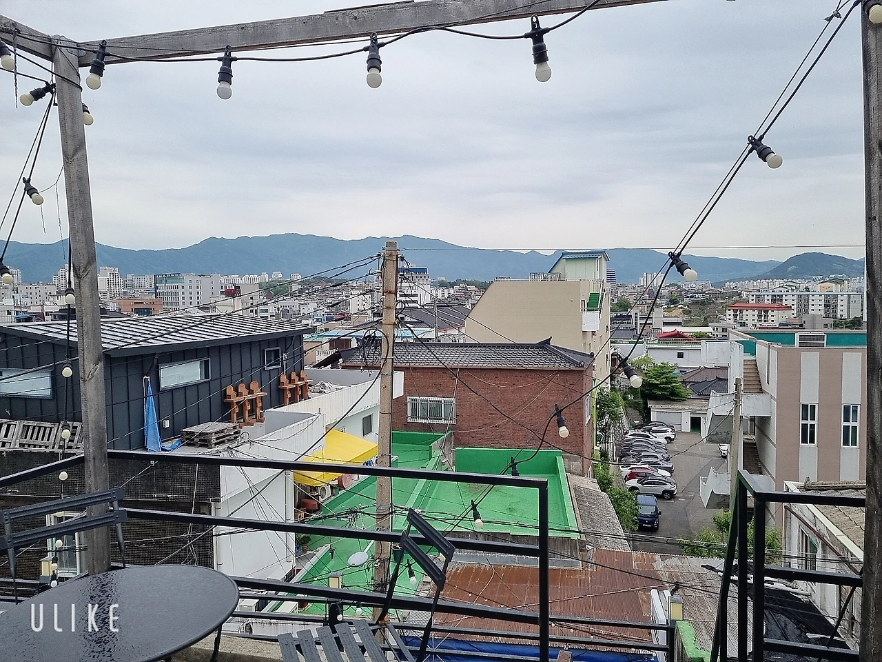 어느 길 앞에 멈춰 자전거를 세우고 좁은 언덕길을 올랐다. 가파른 계단을 오르니 빈티지 느낌이 물씬 풍기는 카페였다. 예스러운 도시의 풍경이 한눈에 펼쳐졌다. 마침 비도 내리지 않아 야외에서 시원한 아메리카노를 마셨다.