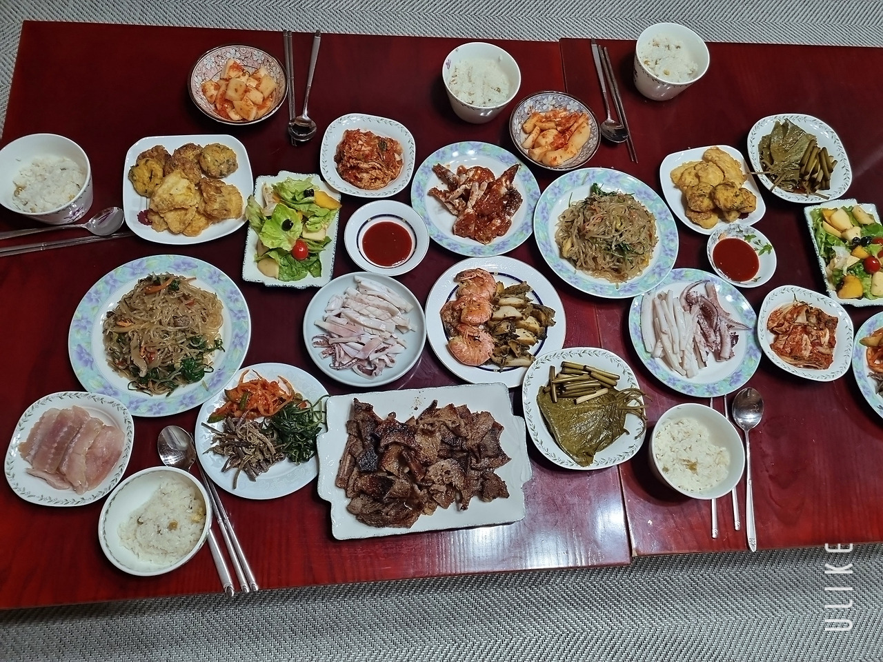 이미 거실엔 상 한가득 음식이 놓여있었다. 먼 길 왔다며 얼른 먹으라는데 어디에 먼저 젓가락을 대야 할지 몰랐다. 허여 물건 하니 때깔 좋은 홍어를 짚으니,
