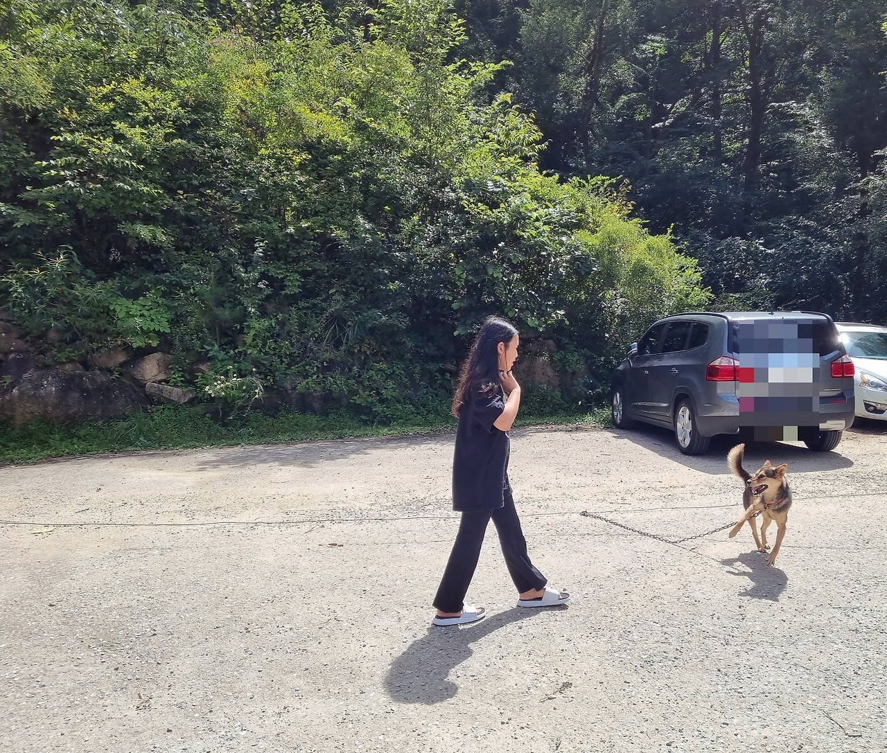인적 없는 길. 자연이 내는 화음은 지친 귀를 달랬다. 풀이 바람에 닿아 푸석거리고, 저 너머에서 이름 모를 새가 지저 기고, 냇가에서는 세찬 물줄기가 커다란 소리를 만들었다. 마치 오케스트라의 협연을 듣는 것처럼 잠시 눈을 감고 달콤한 음악에 젖어들었다. 하지만 나의 평온은 수풀 사이에 코를 박고 무언가를 열심히 탐색하는 또순이의 부산함에 금세 깨졌다. 또순이의 넘치는 결기에 줄의 잡은 내손에도 잔뜩 힘이 들어갔다.