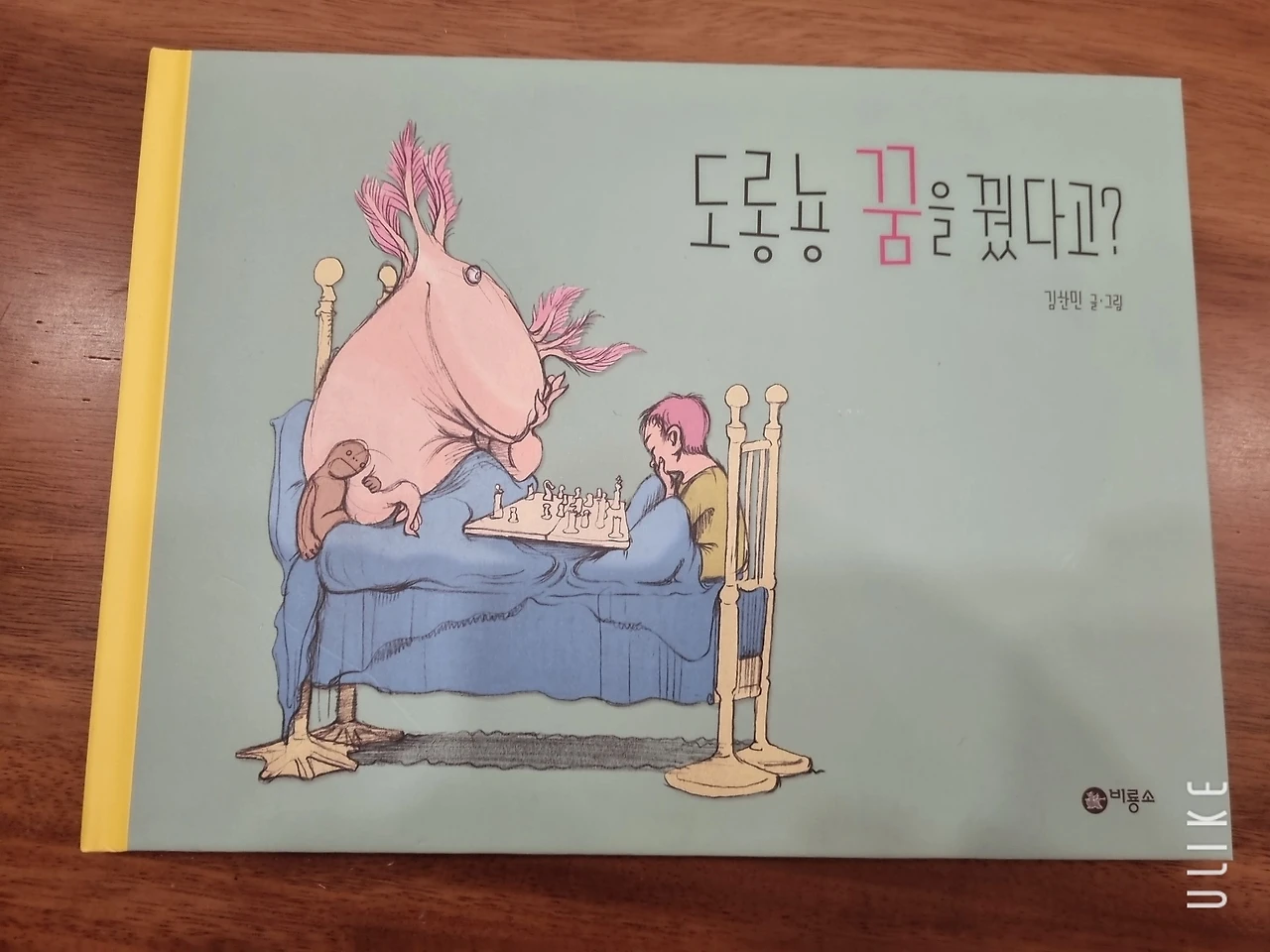 책은 마니또 선물로 받은 강현민 작가의 그림책 '도롱뇽 꿈을 꿨다고?'였다. 표지부터 침대에 아이와 도롱뇽이 나란히 앉아 체스를 두는 장면이 커다랗게 그려져 있는 등 범상치 않았다.