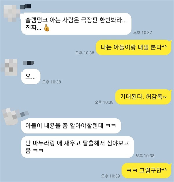 ▲ 고등학교 친구들과의 카톡방 고등학교 친구들과의 카톡방이 슬램덩크 이야기로 들썩거렸다. ⓒ 신재호