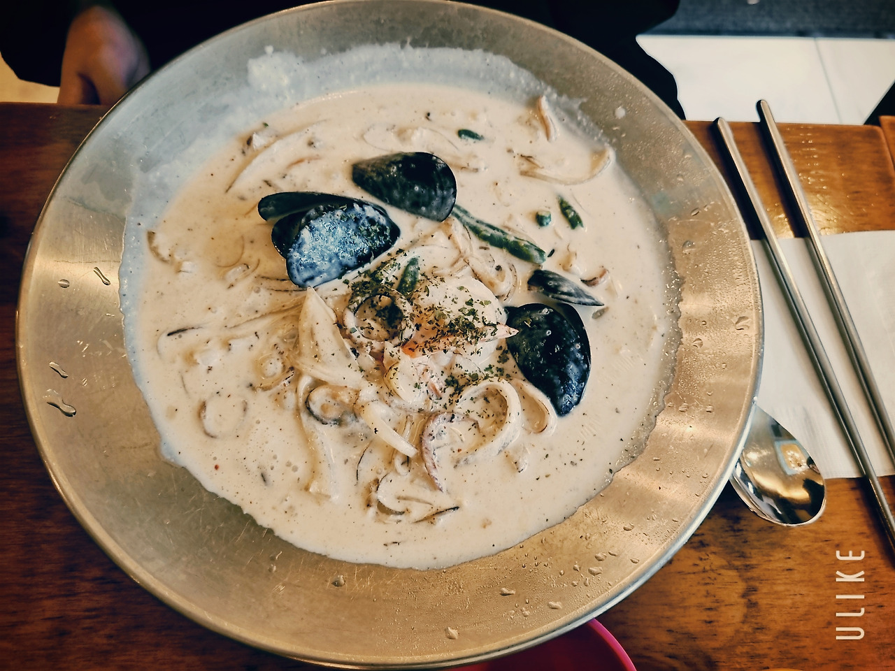 음식점 안은 빈자리가 없을 만큼 가득했다. 아들은 크림 짬뽕을 나는 오리지널 붉은 짬뽕을 시켰다. 원래 시키려했던 탕수육은 교정 중인 아들이 마음을 바꿨다. 둘 다 허기졌는지 둥근 그릇 안에 쉴 새 없이 젓가락질을 했다. '호로록'거리는 소리가 연달아 울리며 묘한 화음을 만들었다. 하얀 짬뽕이 궁금해서 한 젓가락 했더니 파스타와 유사하면서도 매콤하니 짬뽕 고유의 맛도 담겨있었다. 식사를 마치고 다음 목적지를 정했다. 약간의 논쟁을 거친 후 건대를 가보기로 했다.