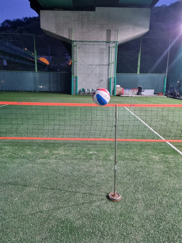 ▲ 족구연습 동기 형은 매일 족구 타격기로 꾸준히 연습을 한다. ⓒ 평생족구
