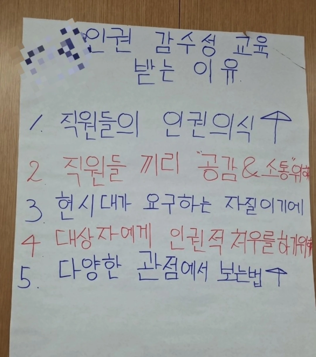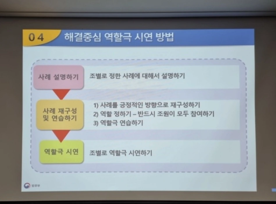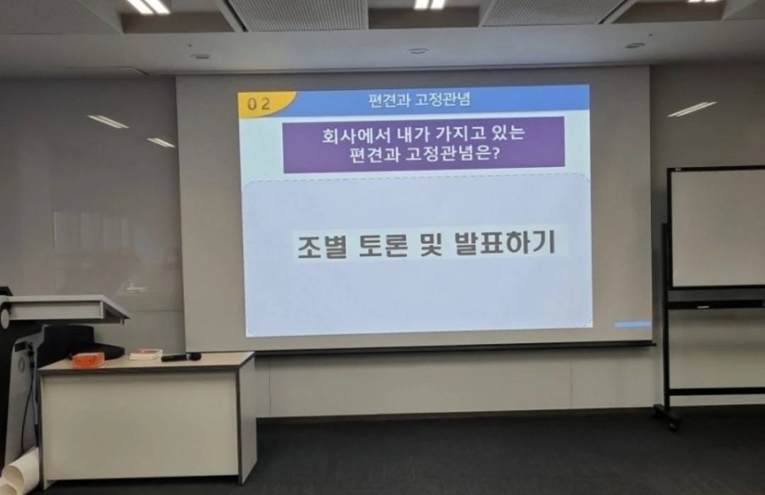 나는 무언가를 가르치는 역할이 아닌 서로 말할 수 있는 분위기를 만들어주는 촉진자였고, 그 이후에는 교육생이 스스로 답을 찾아갔다. 그간 직장 내에서 편히 말할 수 없는 고충을 진솔하게 나누고, 시대에 맞는 감수성을 갖고 어떻게 업무에 적용해서 활용할지에 관해서 토론하고, 역할극을 통해서 해결점을 찾아보는 시간을 가졌다.