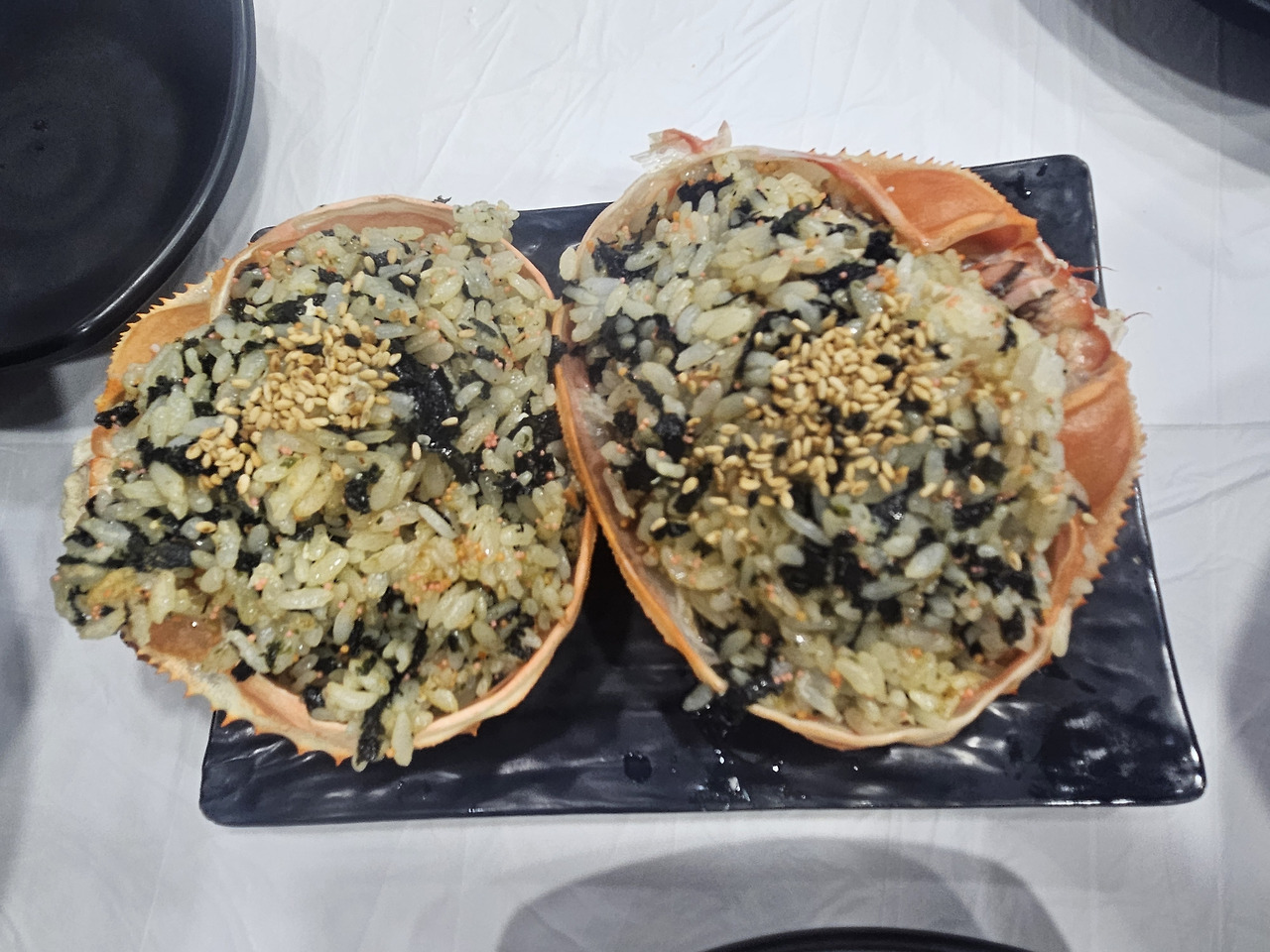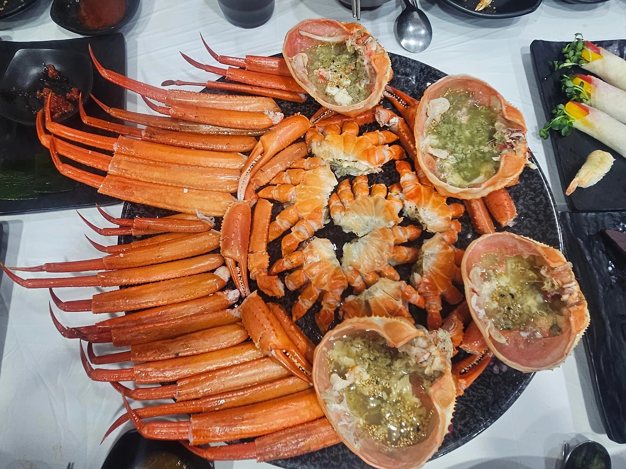 음식점에 도착해서 홍게 세트 메뉴를 시켰다. 반찬 가짓수도 많았고, 이미 정리해서 나온 게살도 먹음직했다. 추가로 대게라면과 볶음밥도 2인분도 주문했다. 양이 너무 많은 것 아닌가 하는 우려가 무색하게 깨끗하게 싹싹 비웠다. 역시 뭐든지 잘 먹는 우리 가족이다.