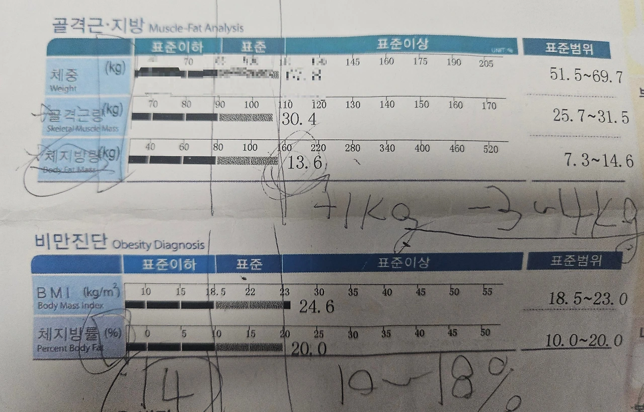내 말은 들은 트레이너는 파일 철 속에서 지난번 했던 인바디 기록을 꺼냈다.